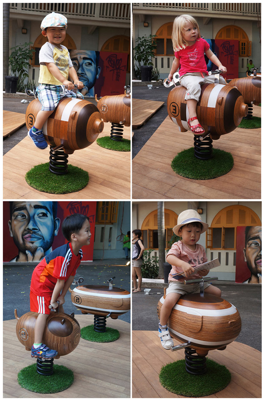 Der Industriedesigner Chan Wai Lim spielte für das Unternehmen bei der Gestaltung einer Reihe von Holzfassaden Kleine Gedanken beschloss, ihre wundervollen Erinnerungen an eine einfache Kindheit auf einer Farm in Singapur zu teilen. Als kleines Mädchen spielte sie am liebsten mit Tieren und handgefertigten Gegenständen aus Holz, was auch das Design von drei bezaubernden Holzspielzeugen beeinflusste, die aussehen, als wären sie aus den 70er Jahren des letzten Jahrhunderts stammen.