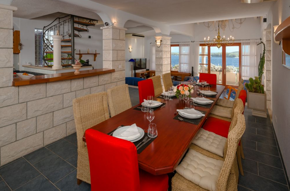Beim Betreten des Grundstücks der Villa Hvar Carpe Diem öffnet sich vor uns ein großer Innenhof, der, umgeben von viel Grün, einer mediterranen Oase gleicht. Steinstufen führen zu einem wunderschönen Swimmingpool, wo jeder Gast den Rest der Welt vergisst. Sie können auf einer der fünf voll ausgestatteten Terrassen weiter entspannen oder ins Innere gehen, wo sich neben einer brandneuen Küche und einem geräumigen Wohnzimmer mit Esszimmer sieben geräumige Schlafzimmer und sieben luxuriöse Badezimmer auf drei Etagen befinden. Die Villa Hvar Carpe Diem eignet sich für eine komfortable Unterkunft für bis zu 14 Personen, und für die Anmietung berechnen wir zwischen 1000 und 2000 Euro pro Tag.