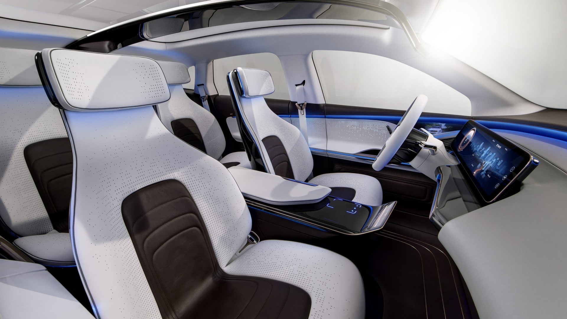 Generations-EQ es ist natürlich wie jedes andere Konzeptstudie ein ziemlich futuristisches Produkt, das sie auf riesige Felgen setzen, die genau messen 21 Zoll, gab ihm eine silberne Farbe (Aluträger) und er rein Einzelheiten ließ es wie aus einer anderen Welt erscheinen. Ein Auto ist z ohne Scheibenwischer und Seitenspiegel. Letztere werden durch Kameras ersetzt. Kenner erkannten schnell die Absicht von Mercedes, künftig als erstes vollelektrisches Fahrzeug ein Sport-SUV anzubieten und springen damit auch in die Gunst von Tesla. Wenn wir genauer hinschauen, erkennen wir den Begriff Der GLC des nächsten Jahrzehnts.