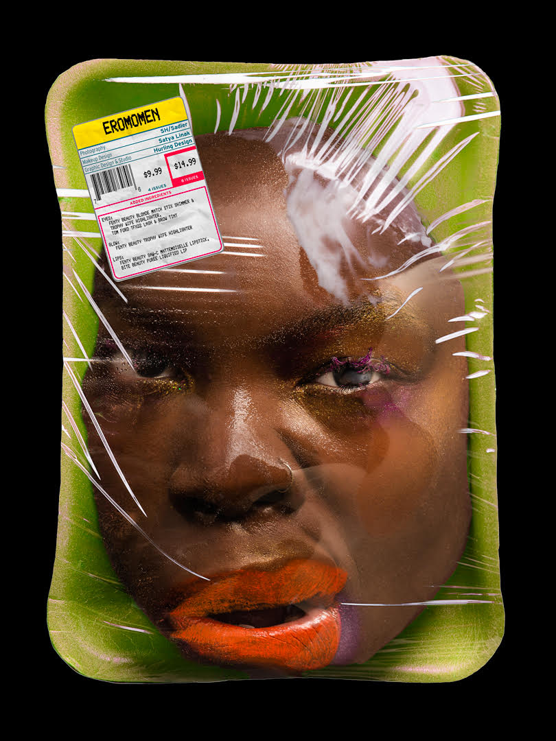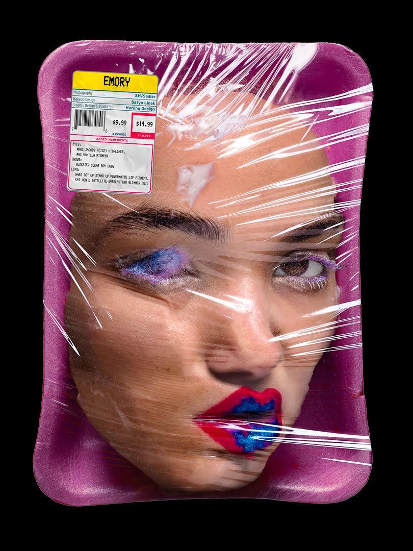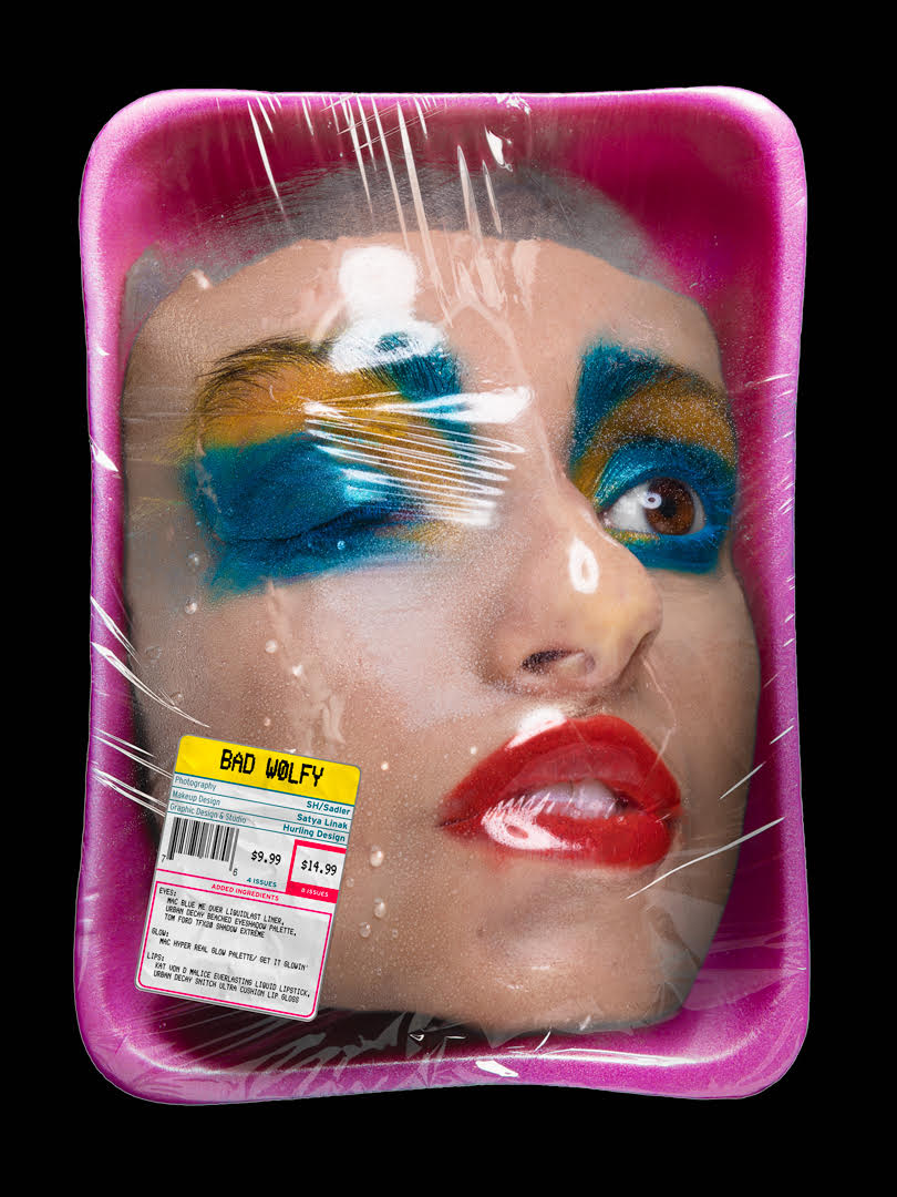 v Verpackung Pro Frischfleisch, die auch ihre eigene hat Etikett, Preis und Haltbarkeit, sie installierten die Gesichter der Models ‒ Badw0lfy, Miki Hamano, Adelina Novak, Eromomen und Emory ‒, die uns das sagen Schönheit es ist nicht das was uns gesagt wurde. Jim ist erfolgreich?