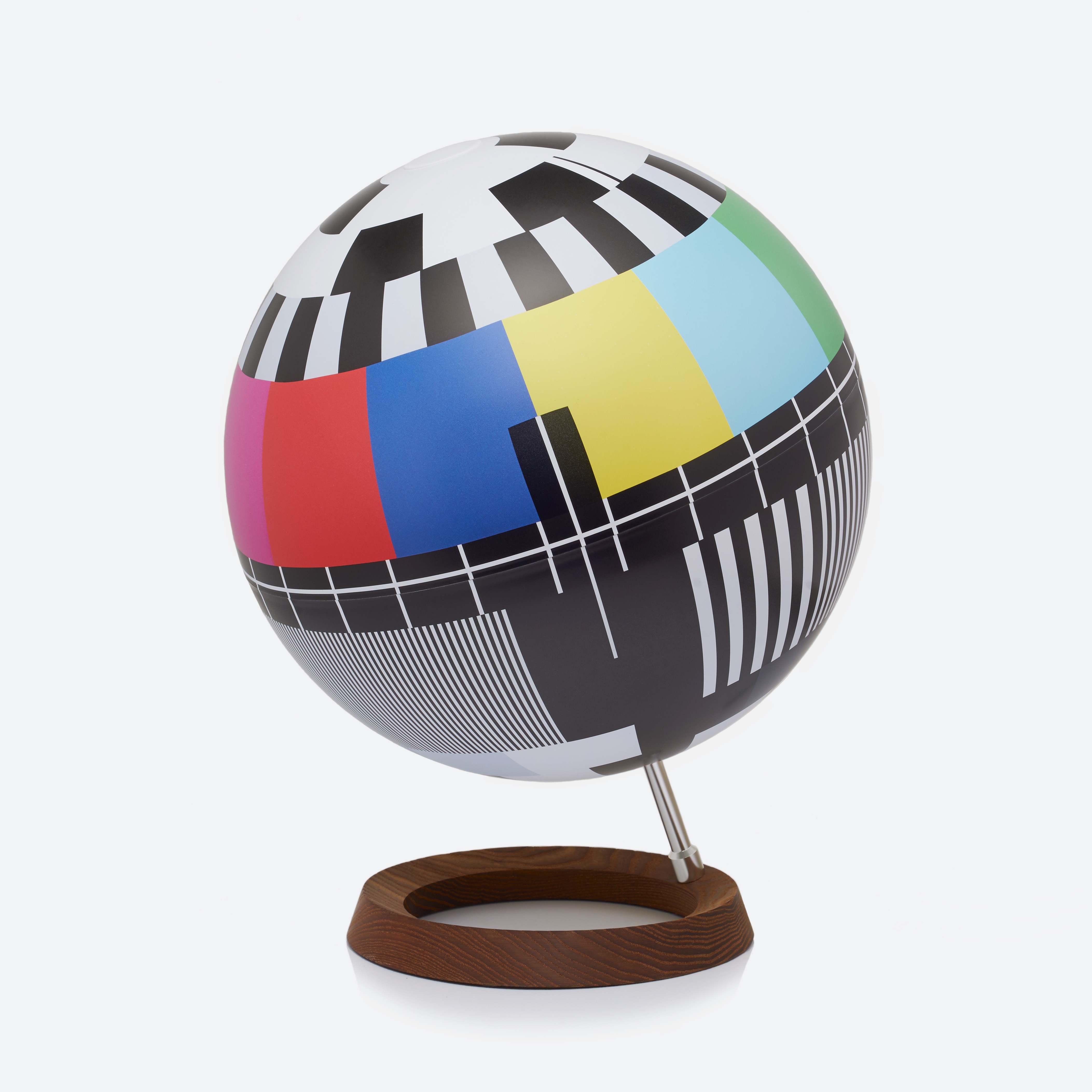 Erinnern Sie sich noch an die Testbilder von TV-Sendern auf analogen Fernsehern, mit deren Hilfe wir das Bild verbessern konnten? Wahrscheinlich haben Sie das Bild unseres Testbildes des nationalen Fernsehens in Ihrem Kopf verschlüsselt. Auch wenn diese Szenerie komplett aus unserem Leben verschwunden ist, kehrt sie nun in Form der Mono Lamp Tischleuchte, die die Form einer Tischkugel nachahmt, zurück auf die Bildfläche.