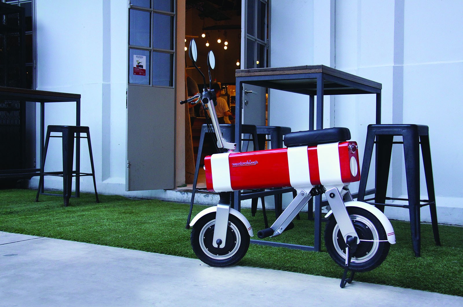 Metrski skuterček z medosno razdaljo 75 mm Frauen Litium-Ionen-Batterie, ki se prek gospodinjskega priključka napolni v eni uri in nas na polnjenje prepelje 60 Kilometer weit weg 40 V 350 W motor pa lahko Motochimpa priganja do hitrosti 30 km/h. Podpira brezstični RFID-ključ (radiofrekvenčna identifikacija), ki zagotavlja, da motor ne dobi nog. Zanj boste morali odšteti pribl. 1800 Euro.