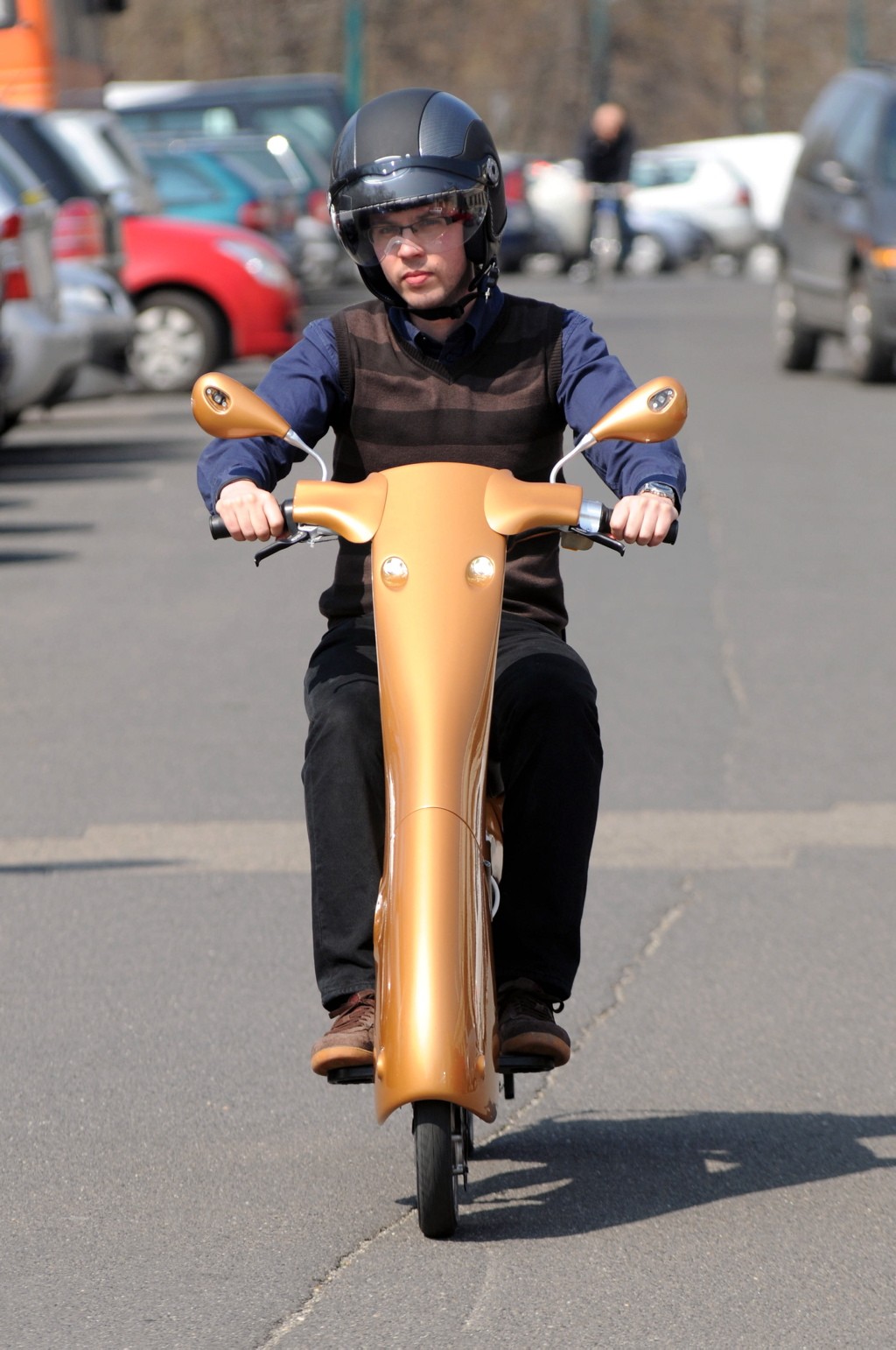 Bewegen ist ein tragbarer Elektroroller, der sich in einen Reisekoffer falten lässt. Es wurde in Ungarn von einer gemeinnützigen Organisation gegründet Antro Nonprofit Ltd, die sich mit Entwicklung beschäftigt umweltfreundliche Verkehrsmittel. "Pocket" und modern gestalteter Scooter wiegt alles aufgrund des Carbon-Körpers 25 Kilogramm, und die Luft schneidet mit einer Geschwindigkeit von bis zu max 45 km/h, zu dem beschleunigt v 5,4 Sekunden. 500-W-Akku mit 2000 Lade- und Entladezyklen liefert Energie an die Elektromotoren in den Rädern.