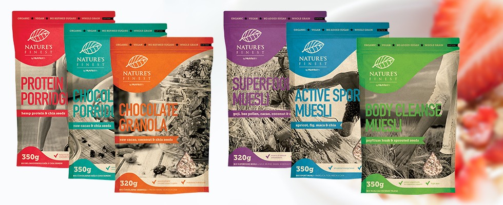 Getreide, ki se jim ne boš mogel/-la upreti! Mamljiv okus, funkcionalen učinek dodanih superživil in poleg tega hranljiv in zdrav obrok. Gre za 100% ekološke in veganske žitarice. Izbiraš lahko med šestimi izdelki; 1. ŠPORT MUSLI, 2. MUSLI ZA ČIŠČENJE TELESA, 3. MUSLI S SUPERŽIVILI, 4. BELJAKOVINSKA KAŠA, 5. ČOKOLADNA KAŠA, 6. ČOKOLADNA GRANOLA. In kaj podarjamo?
