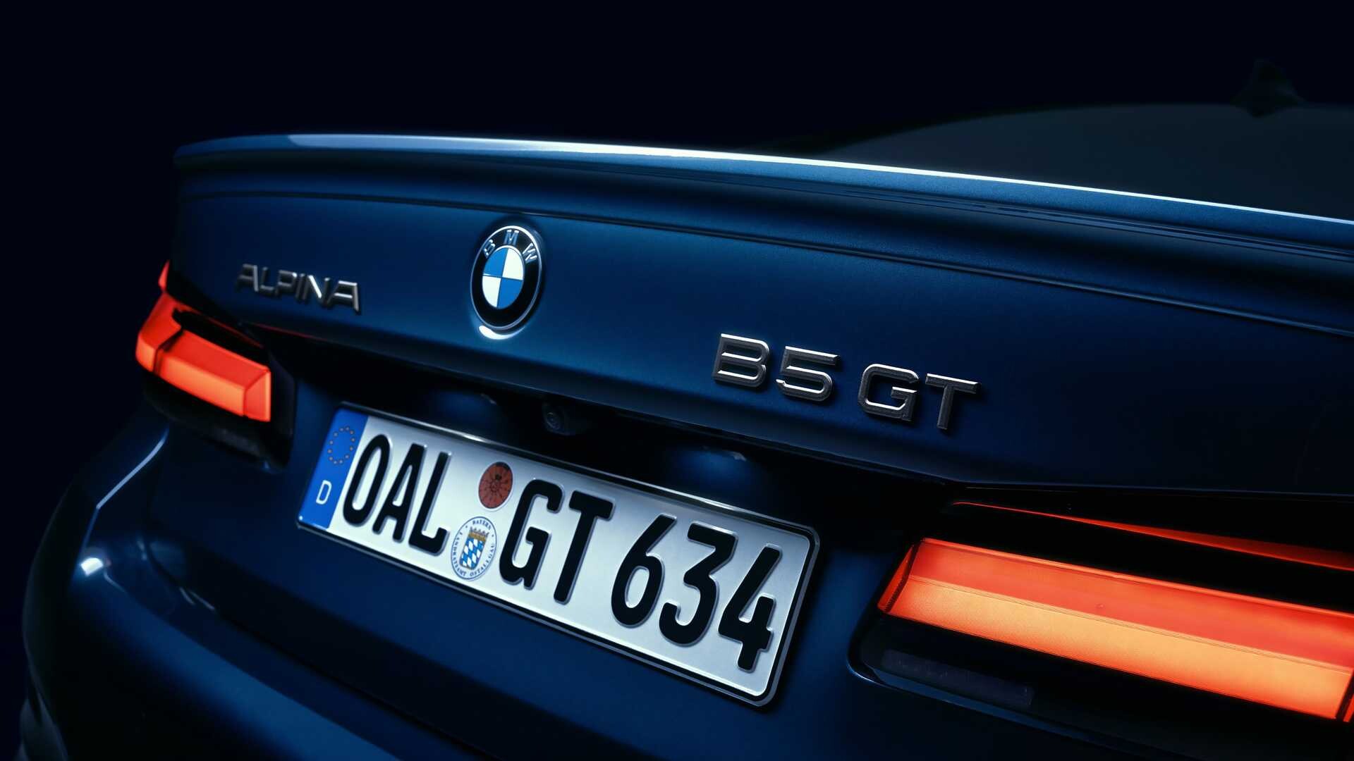 BMW B5GT hat auch charakteristische Designelemente alpin, einschließlich doppelter, mit Titannitrid beschichteter Endrohre für einen schwarzen Akzent, und der Option von Alpinas 20-Zoll-Classic-Rädern mit 20 Speichen in Marron Volciano. Das Äußere ist in Alpinas Standardblau oder -grün sowie in sechs Sonderoptionen erhältlich: Arctic Race Blue, Petrol Mica, Verde British Racing, Chalk, Imola Red und Daytona Violet.