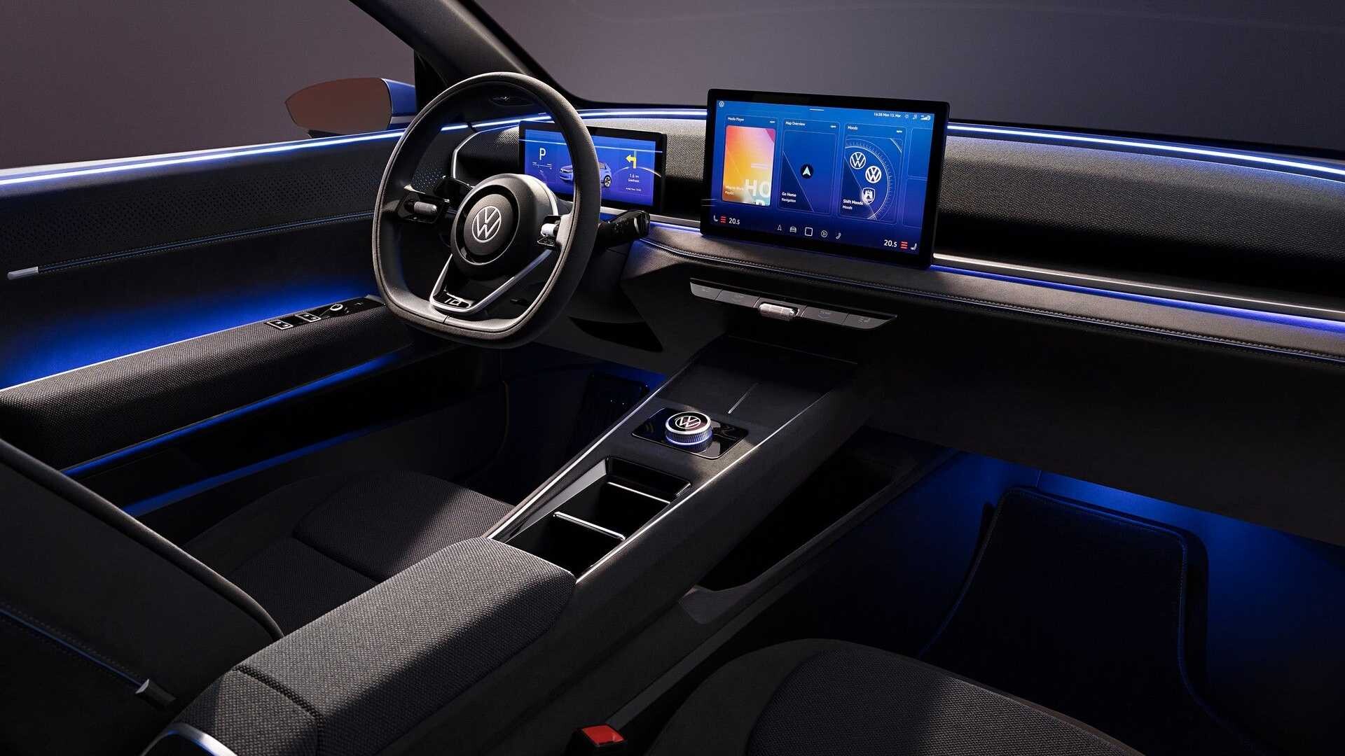 Das Design des Volkswagen ID.2all ist frisch und modern, mit einem vertrauten Look, den VW-Fans lieben werden. Die C-Säule ist vom ersten Golf inspiriert, die Frontpartie zeigt ein freundliches Gesicht mit einem Lichtelement über die gesamte Breite zwischen den Scheinwerfern. Die Kabine ist mit einem 12,9-Zoll-Touchscreen-Infotainmentsystem und physischen Tasten ausgestattet, um frühere Beschwerden zu beheben, darunter ein Lautstärkeregler und ein vereinfachtes Bedienlayout.