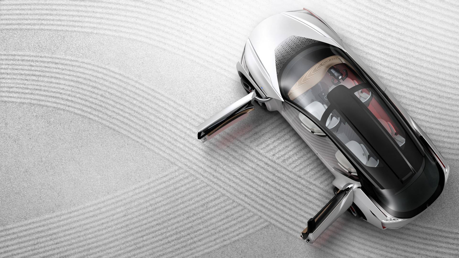 Nissan IMx-Konzept sieht von allen Seiten interessant aus. Vordere und hintere Stoßstangen machen es möglich einzigartig, noch mehr die Tür, die sich zum sogenannten öffnet „Selbstmord“-Modus. Ein riesiges Glas Panoramadach erstreckt sich von der Vorderseite bis zum Heck des Autos. Der Kontrast zwischen der perlweißen Farbe und dem schwarzen Dach mit schwarzen Säulen unterstreicht dies zusätzlich Abblendlicht Nissan IMx. Der Innenraum ist minimalistisch, ohne irgendwelche Knöpfe und ähnliche Schalter. An hölzern Armaturenbrett ruht OLED-Bildschirm, über die wir das gesamte Zubehör im Auto verwalten. Die Sitzrahmen wurden mit hergestellt mit einem 3D-Drucker. Auf ihnen sind Muster zu erkennen „Kumiki“, was im japanischen Gedankenspiel aus Holz zu sehen ist.