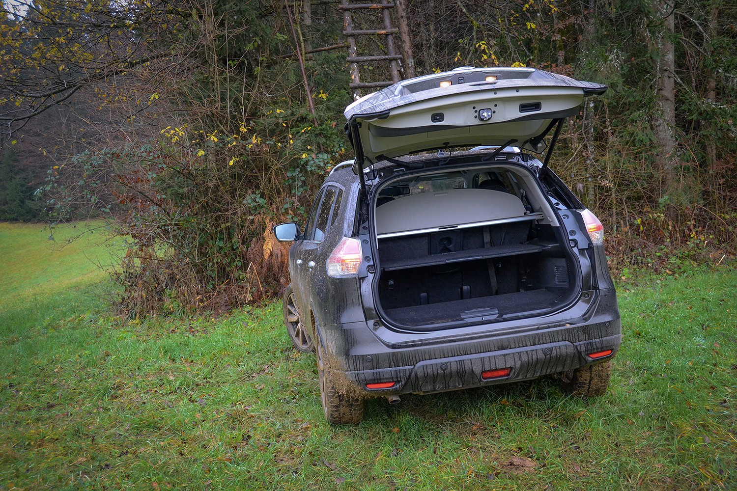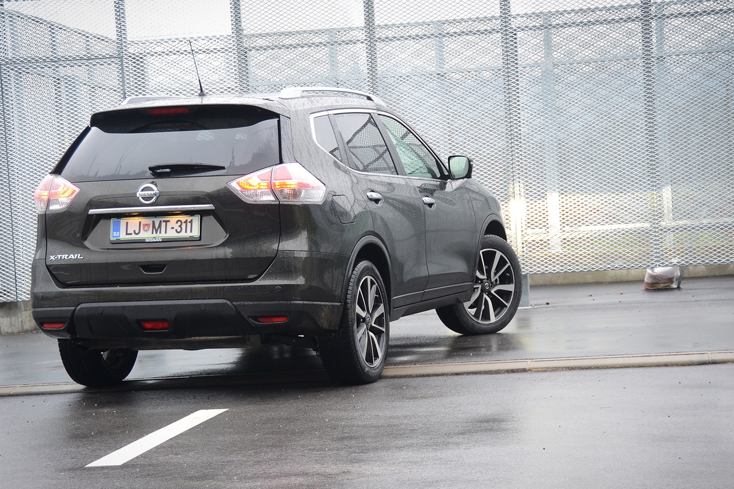 Gledano z boka bo več opazovalcev zmedenih kateri model dejansko stoji pred njimi, del tega gre pripisati tudi temu, da se je qashqai potegnil, novi X-trail pa svoje mere dobro skriva. Na zadku pa opazovalce o modelu prepričajo drugačne LED Lichter, če pa tudi to ne, pa vsaj napis modela. Hvalimo tudi serijsko 19-palčno obutev, vključno z dvobarvnimi platišči, je pa res, da skupaj s cestnimi pnevmatikami pada terenska namembnost modela.
