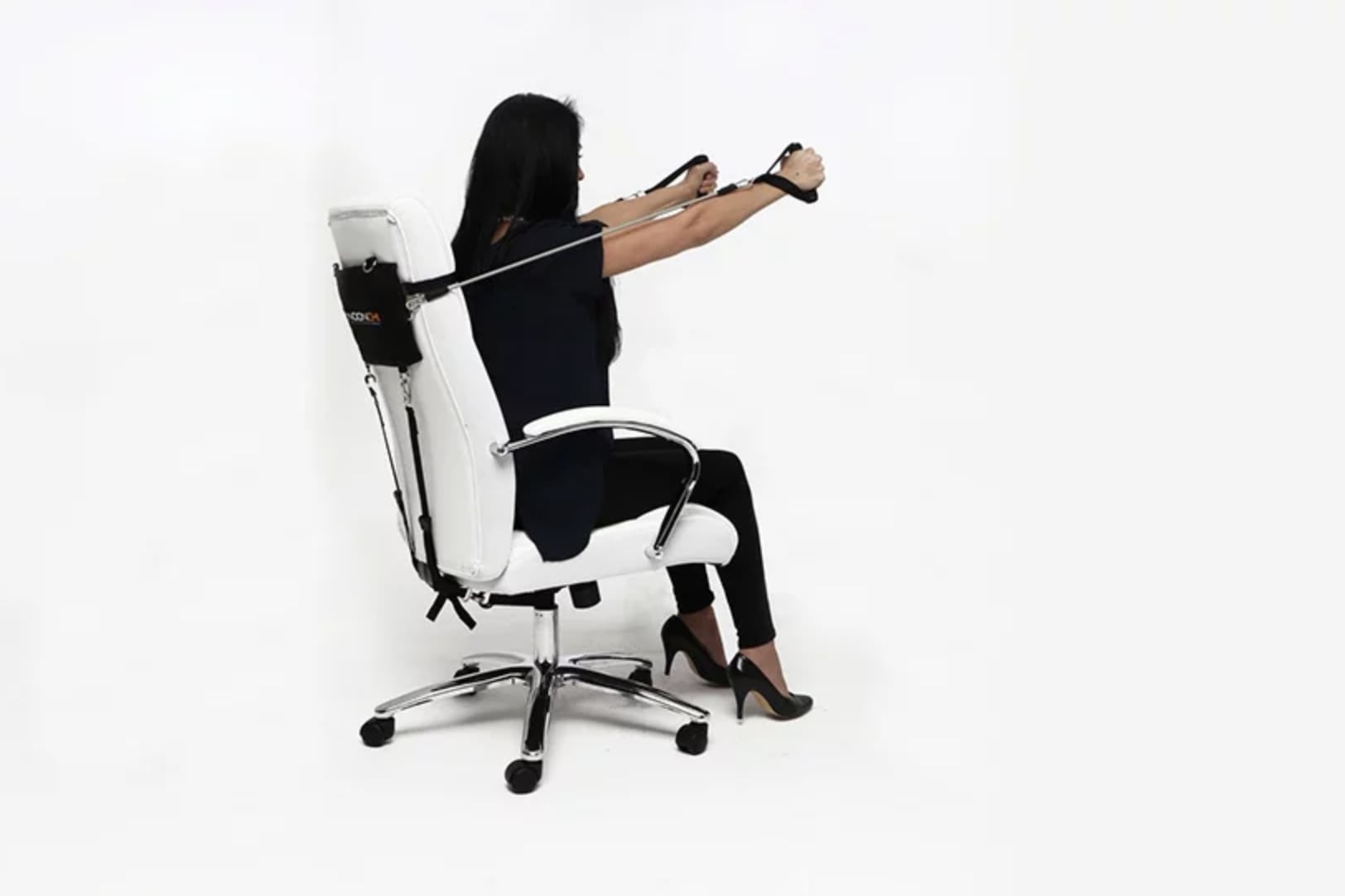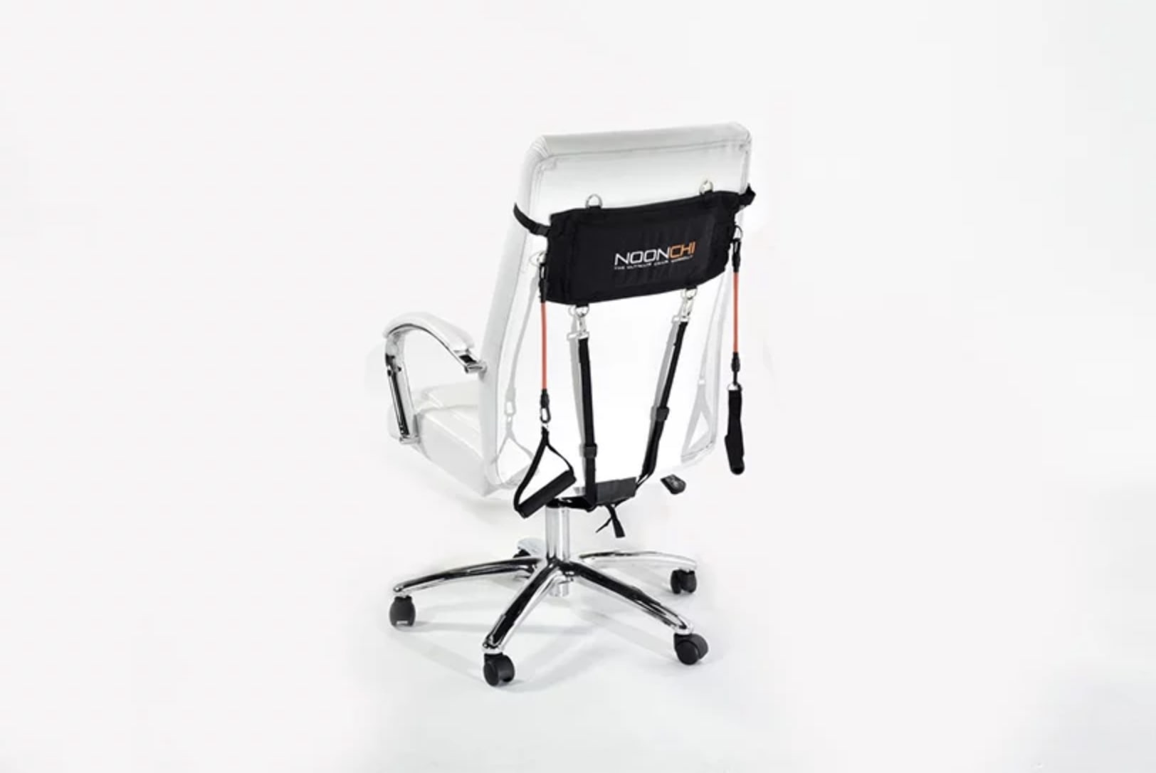 Fitness-System NOONCHI erlaubt dir zu Machen Sie das Training, während Sie auf einem Stuhl sitzen. Ein Training, das abdeckt Dehnübungen und Kraftübungen, kann beginnen, sobald Sie das Gerät am Bürostuhl befestigen.