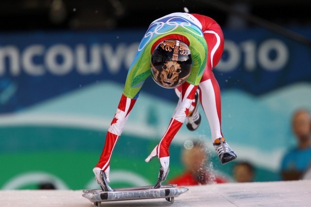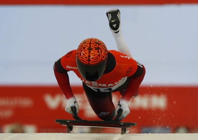 Die olympische Disziplin „Skeleton“ ist eine Wintersportart, bei der der Wettkämpfer mit dem Kopf voran auf einem vorgeschriebenen Schlitten so schnell wie möglich über eine eisige Bahn gleitet. Durch die Liegeposition mit dem Kopf im Vordergrund ist der Helm ein äußerst wichtiges und sichtbares Schutzausrüstungsstück.