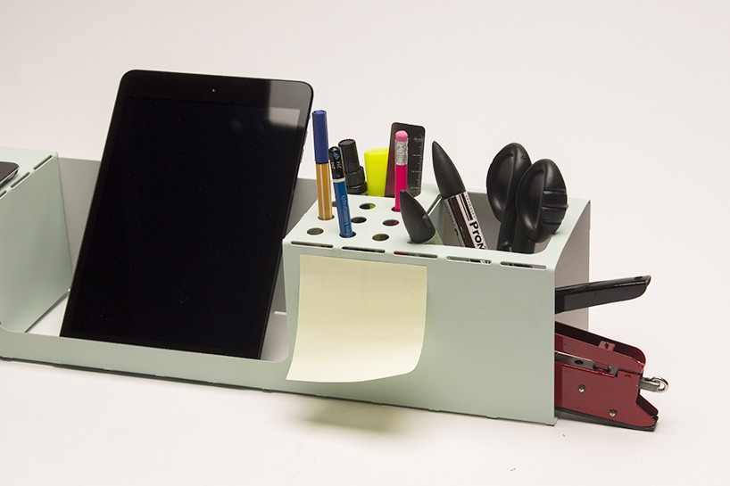Das moderne Leben bewegt sich extrem schnell. Wir hetzen von der Arbeit nach Hause und umgekehrt, und der Teufelskreis hat weder Ende noch Ort. Ganz zu schweigen von der Möglichkeit, all die Haftnotizen, Marker, Notizen, Visitenkarten, Büroklammern und anderen Schmuckstücke, die ihren Weg auf unseren Schreibtisch finden, wegzuräumen. Das wäre es Aufrechterhaltung der Ordnung auf unserer Werkbank einfacher, entstand .ORG, der unverzichtbare Schreibtisch-Organizer, bestehend aus einem einzigen Stück lasergeschnittenem Kohlenstoffstahl. Ein 0,8 Millimeter dünnes und 100 x 200 Zentimeter großes Stück Kohlenstoffstahl lässt sich in nur fünf Minuten zusammenfalten und ist bereit für eine „schicke“ Organisation.