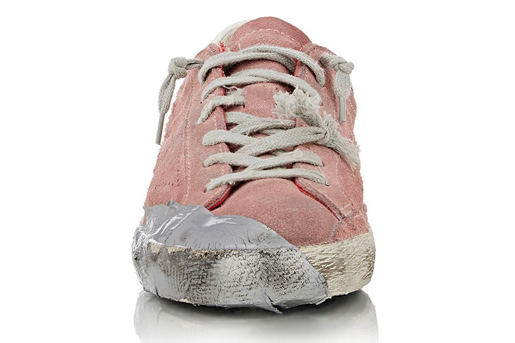 Wenn Sie nicht die Geduld haben, Ihre ausgefallenen Turnschuhe zu zeigen, können Sie jetzt neue für 600 $ oder mehr bestellen, vorgefärbt, getragen und einige sogar geklebt (wir sind heutzutage auf einer Kommode). Wenn Sie mit ihnen vor einen Nachtclub "fliegen", wundern Sie sich nicht, wenn sie Sie nicht hereinlassen, selbst wenn Sie sie davon überzeugen, dass sie neu und ein Vermögen wert sind. Golden Goose hat sich wirklich Mühe gegeben, sie für Sie gut zu schälen. Ist der Preis deshalb so hoch, weil jemand sie auf natürliche Weise "winken" musste, damit Sie sie nicht dazu bringen mussten, das gewünschte Aussehen zu erhalten?