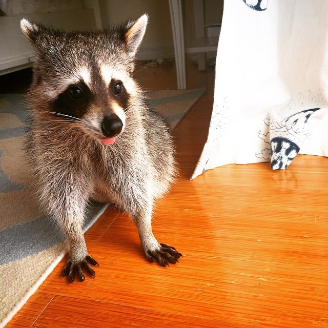 V galeriji si lahko ogledamo prikupno rakunko Pumpkin, ki misli, da je pes!