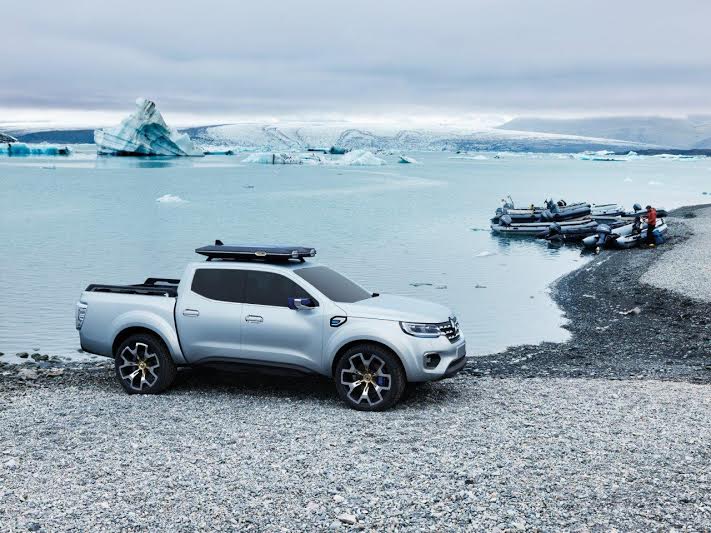 Der Renault Alaskan verfügt über Leuchtdioden Voll-LED, interessanter Auspuff Aluminiumrohr aber es ist in der Mitte platziert. Sie fallen auch ins Auge blaue und gelbe Accessoires an Felgen, an Bremssätteln, Spiegeln und der vorderen Abschleppöse. Drückt Entschlossenheit und Stärke aus, großes Logo auf der Kapuze aber es erweckt den Eindruck eines Statusfahrzeugs. Laderaum verfügt über drei Längsrillen, um die Ladung an Ort und Stelle zu halten. Trotz seiner Abstammung eignet sich der Alaskan nicht nur für die Werkstattarbeit, sondern auch auch für Roadtrips, sportliche Nutzung und Abenteuer. Der Laderaum kann somit anstelle von Arbeitsmaterial gefüllt werden Ausrüstung für Freizeitaktivitäten wie Fahrräder, Campingausrüstung, Suppen usw. Obwohl es sich um eine Studie handelt, wird es so sein Das Serienmodell ist fast ein Spiegelbild des Alaskan, zumindest was die Maßnahmen betrifft. Es wird mit verschiedenen Motoren erhältlich sein und sein Status wird sein erstklassiger Pick-up.