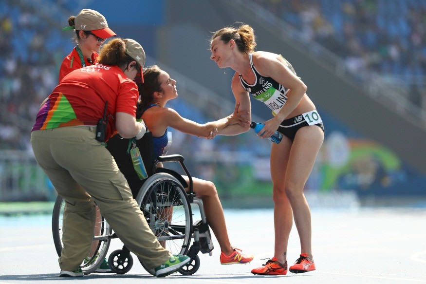 Obwohl sie als Letzte und Vorletzte die Ausrichter der Olympischen Spiele in Rio de Janeiro beendeten mit einem Auftritt im Finale belohnt. D'Agostino wurde nach dem Spiel wegen einer Verletzung im Rollstuhl abtransportiert, während Hamblin sich gegenüber ihren Mitspielerinnen äußerte große Dankbarkeit, und schon vorher umarmten sie sich im Ziel und erwärmten die Herzen aller Zuschauer auf der ganzen Welt.