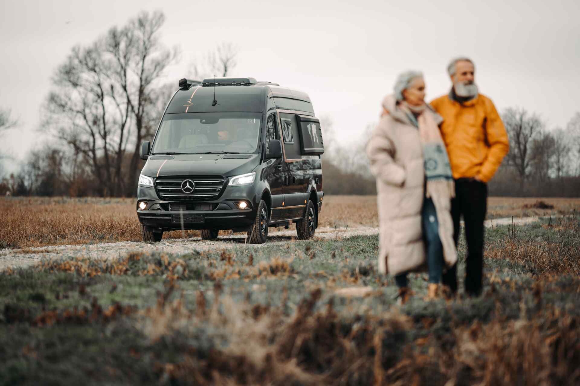 Ausstattung des Adonis-Modells: Trotz der Länge von etwas weniger als 6 m ist das Fahrzeug für die Reise und die Unterbringung von 4 Personen ausgelegt. Das Adonis-Modell ist bereits vollständig ausgestattet und konfiguriert. Das Fahrgestell verfügt über alle möglichen Ausstattungen, die Mercedes-Benz liefern kann; Vom erstklassigen Audio-Navigationssystem bis hin zu allen möglichen Assistenz- und Sicherheitssystemen wie Totwinkelwarner, 360-Grad-Kamera, automatischem Schließen und elektrischen Schiebetüren, leistungsstarkem LED-Tagfahrlicht und vielem mehr. Auch die Ausstattung des Wohnraums ist komplett konfiguriert und umfasst einen LiON-Akku mit einer Kapazität von 100 Ah, eine Solaranlage mit einer Leistung von 230 W, elektrische Ventile für Abwasser und Trinkwasser sowie einen digitalen Bildschirm zur Steuerung aller Elektrogeräte.