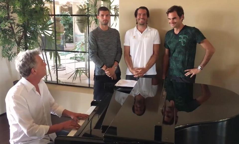 Oder ein tolles Tennis Roger Federer eine Boyband gründen? Gewinner von 18 Turnieren für Grand-Slam überraschte die Fans erneut mit seinem Gesang. Neben dem deutschen Methusalem Thomas Haas und der Nachfolger des Bulgaren Grigor Dimitrow diesmal beim Singen des Liedes Schwer zu sagen, es tut mir leid Gruppen Chicago schließen Sie sich auch den Serben an Novak Djokovic.