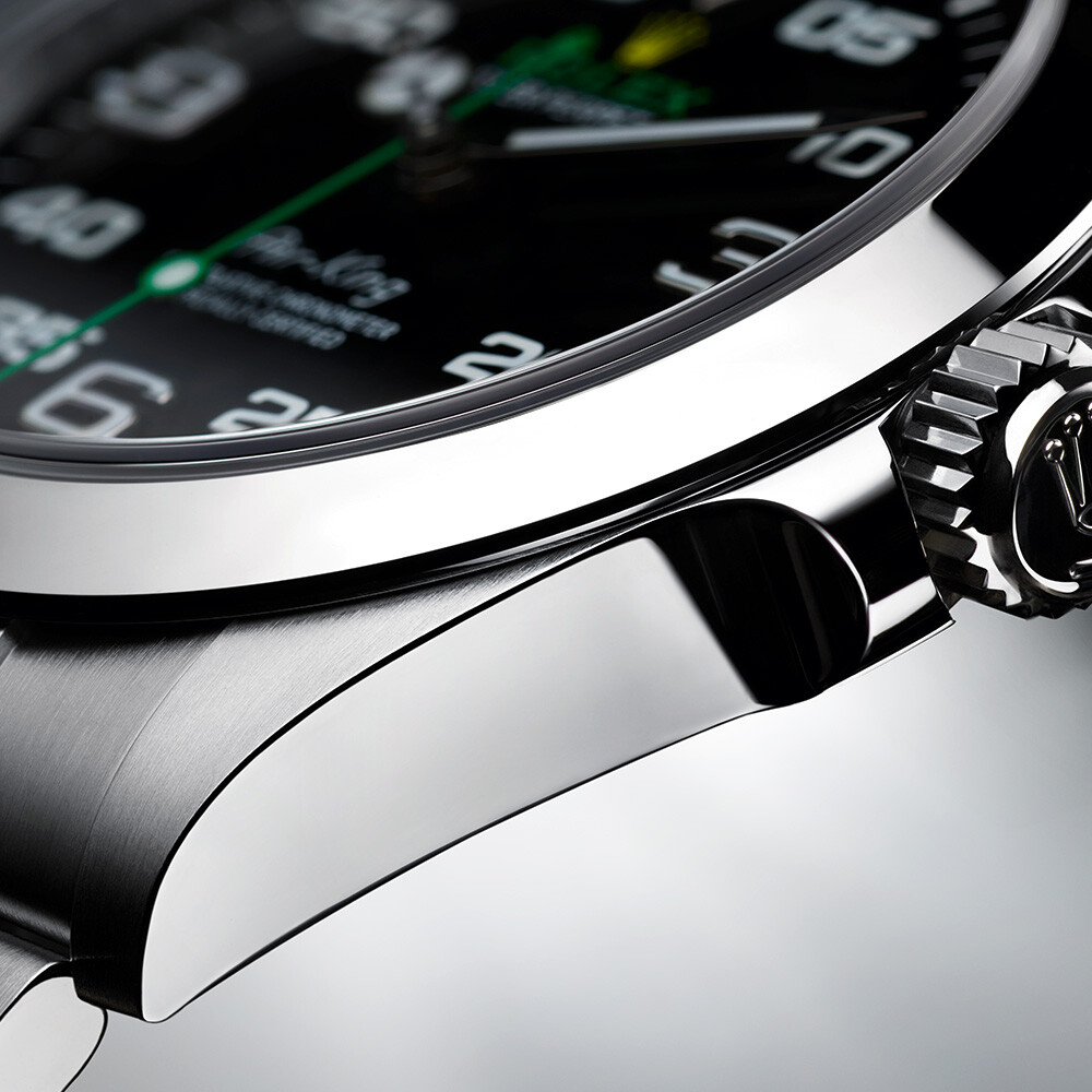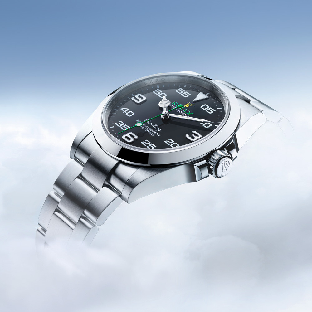 Die Air-King der neuen Generation ist mit dem Kaliber 3230 ausgestattet, einem Uhrwerk an der Spitze der Uhrmachertechnologie, das die Anzeige von Stunden, Minuten und Sekunden ermöglicht.