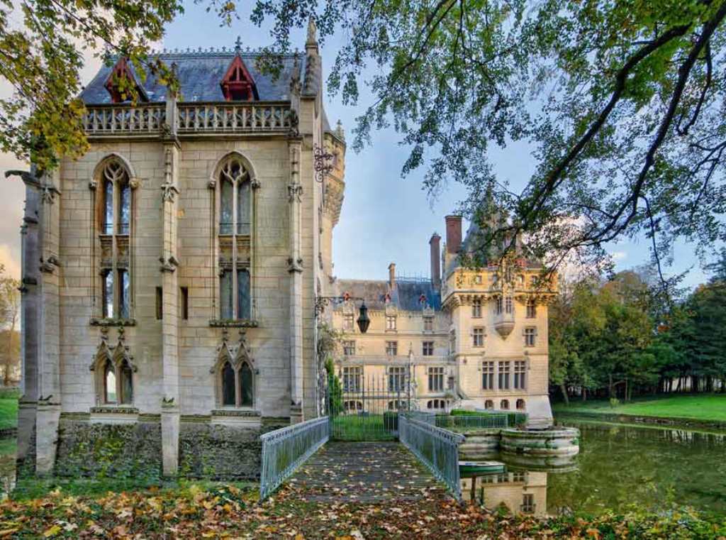 Das Schloss wurde bereits 1507 erbaut und umfasst mehr als 3.500 Quadratmeter mit fast 18 Hektar. Das Anwesen umfasst zwei Nebengebäude, eine Kapelle und die Hauptresidenz, die sich durch ein reiches neugotisches Design auszeichnet, das sich in den kunstvoll geschnitzten Balken an den meisten Decken, den beiden Brücken, die den Wassergraben überspannen, und den schönen, farbenfrohen Eisentoren zeigt . Ein märchenhaftes Anwesen Le Chateau de Vigny ist zweifellos ein Muss, da es nur 48 km nördlich von Paris liegt. Sehen Sie sich in der Galerie die Fotos an, die dieses wunderschöne romantische Schloss in der Nähe von Paris am besten beschreiben.