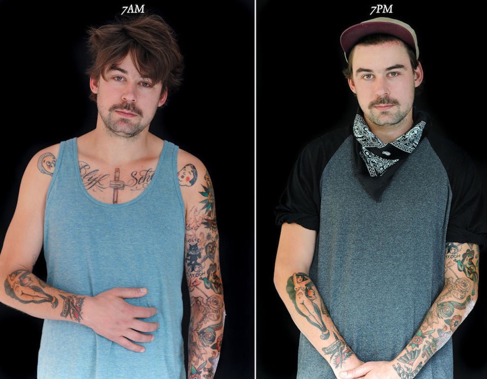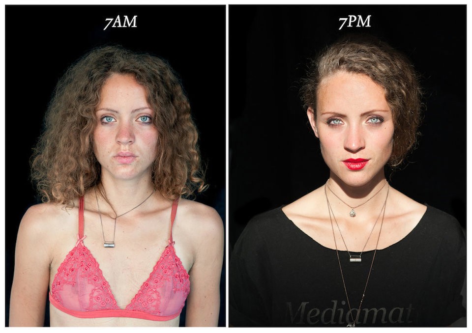 Im vierten Jahr des Projekts basierte ihre Arbeit auf Vergleich der Gesichter von Personen um 7 Uhr morgens und um 19 Uhr abends.