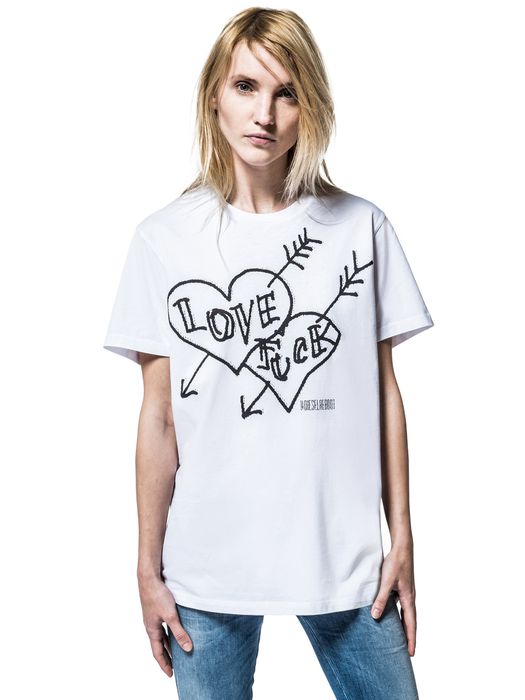 Trotz der Tatsache, dass Weiß in den Sommermonaten unabhängig wird, schließt sich Schwarz gelegentlich auch ihr an Diesels Sommerkollektion, bei dem weiße Jeanshosen in kurzer oder langer Ausführung im Vordergrund stehen. Auch in diesem Jahr sind sie Pflicht T-Shirts. Ausgefallene, mutige, herausfordernde, auffällige Prints in Kombination mit einem Sportparka oder einer Lederjacke, mit raffinierten Sandalen mit hohem Absatz oder mit leichten Sommer-Flip-Flops werden ein Hit sein.