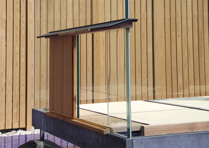 Der Zaun, der den Hof umgibt, besteht aus Zedernholz, das speziell für diesen Anlass aus dem vom Tsunami 2011 betroffenen Gebiet Japans importiert wurde. Die Kombination von traditionellem Holz und modernem Glas weist auf die Verbindung von Geschichte und Technik hin, und der Autor sucht auch nach Parallelen zwischen der japanischen Teezeremonie und der venezianischen Glasherstellung, da es sich in beiden Fällen um einen tief in der Kultur der Nation verwurzelten Brauch handelt.