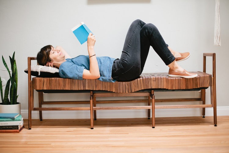 Holzbank Sitskie-Block ist ein bemerkenswertes Möbelstück für sich, aber man erkennt es erst wirklich, wenn man darauf sitzt. Aufgrund des einzigartigen Gebäudes passt sich dem Körper an. Die Holzbretter sinken unter dem Gewicht ein und bieten dem Benutzer ein weiches und komfortables Erlebnis, ohne die Vorteile zu beeinträchtigen, die es bietet feste Oberfläche. Wahrscheinlich das bequemste Holzmöbelstück, das wir je gesehen haben.