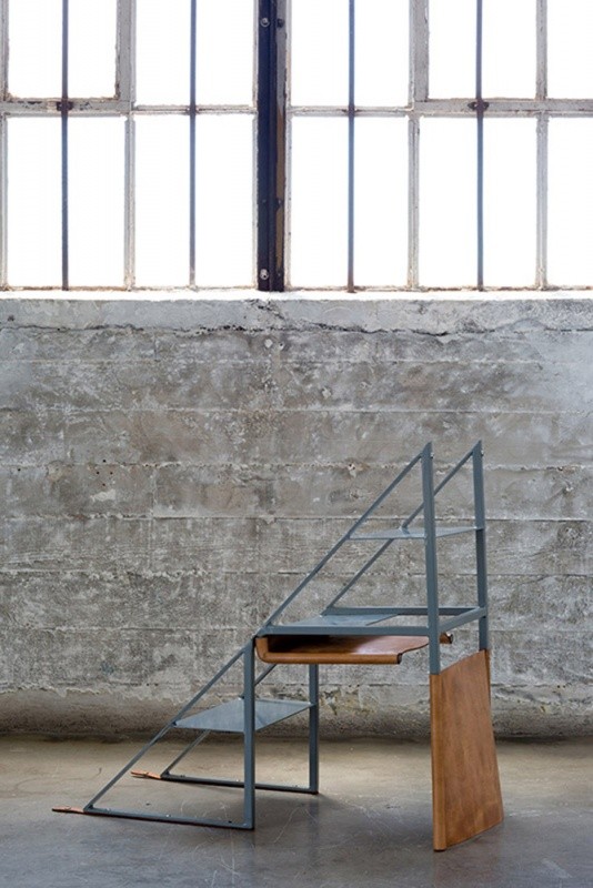 Amerikanischer Designer Stefan Kenn und Schweizer Victorinox sie sind Schweizer Taschenmesser-Stil produziert innovativer Stuhl (Gemeinsam bereiteten sie eine Möbellinie vor Victorinox-Macher, die neben dem Stuhl auch besteht aus Schreibtisch und Kleiderschrank), die sich verwandeln kann in eine Leiter, ein Couchtisch, Regale und sogar ein Spiegel. Es besteht aus Stahl und ist pflanzlich gegerbt Leder.