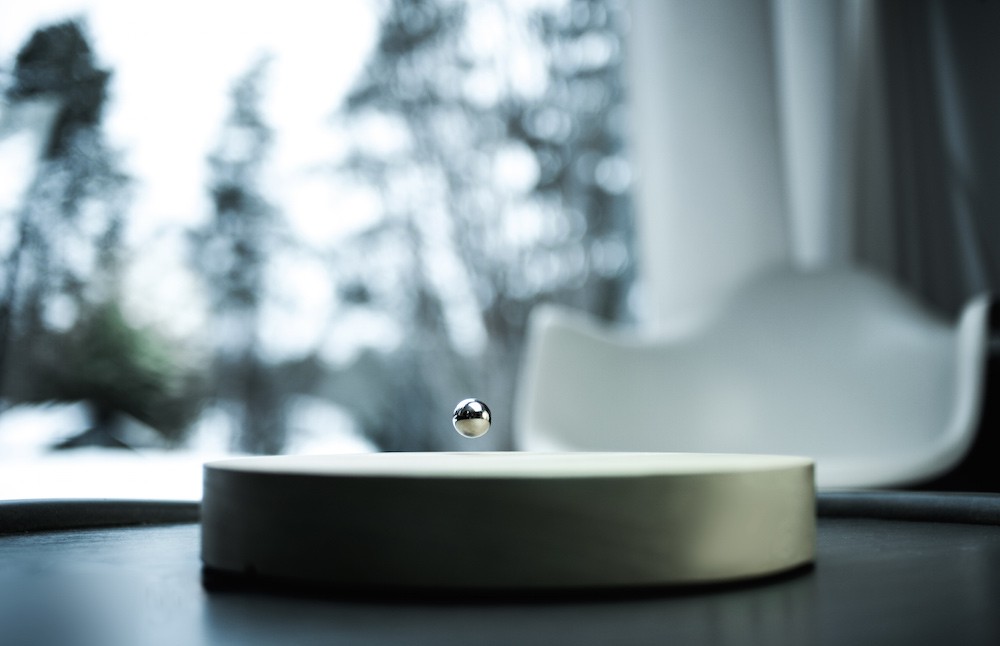 Die schwedische Marke Flyte ist bekannt für ihre Liebe zum Schweben. Etwas anderes konnten wir von ihrer Wanduhr nicht erwarten. Die Story-Uhr verwendet Magnetismus und eine Kugel, die anstelle von Zeigern über einem hölzernen „Zifferblatt“ schwebt.