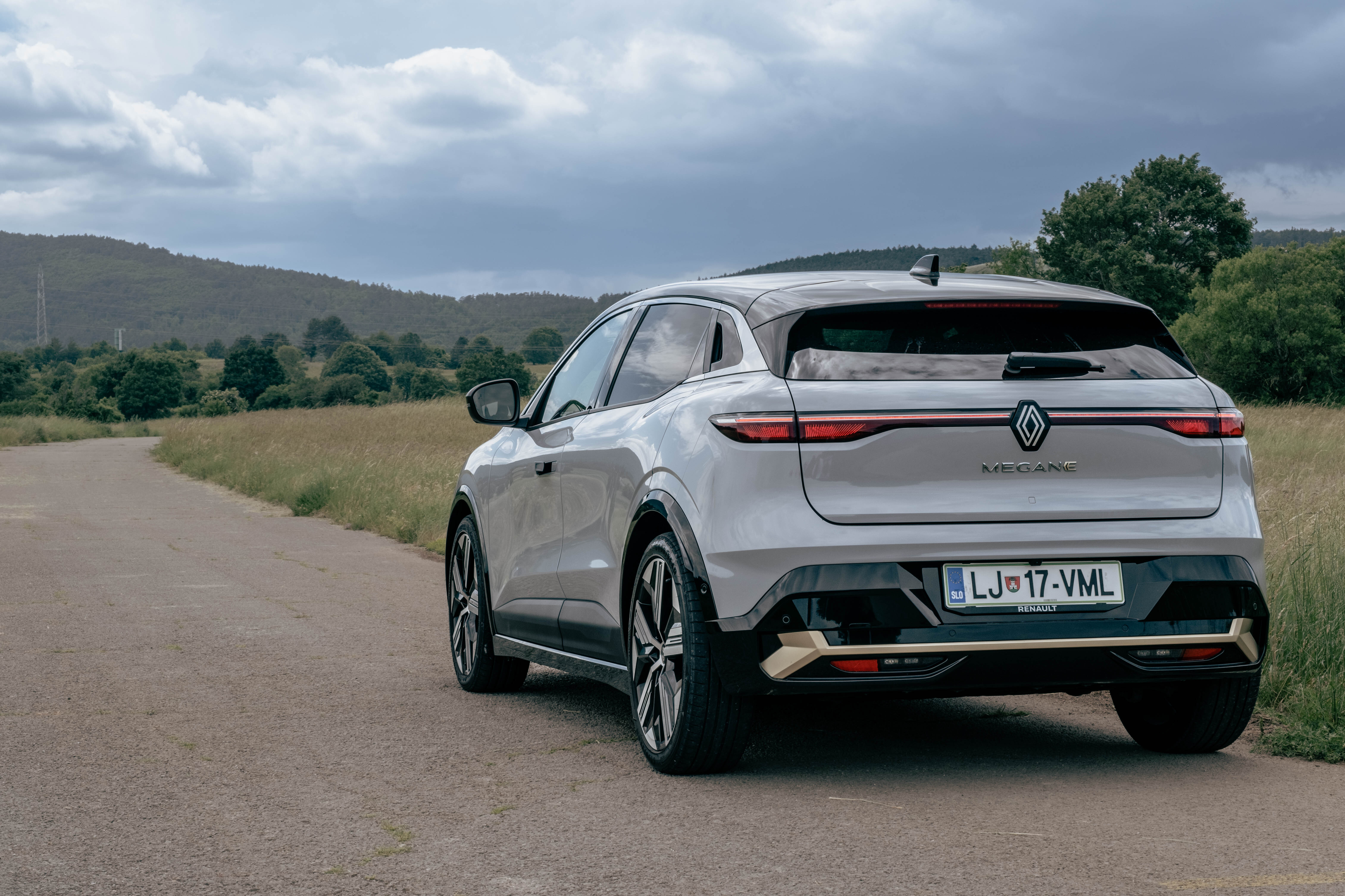 Megane E-tech ist auch kein Geschäftsreisender. Es ist einfach nicht dafür gemacht, aber es wird dort ankommen Flughafen München mit einem halbstündigen Stromausfall problemlos zu bewältigen. Aber es wird ein Problem sein, wenn die Kinder erwachsen werden und wenn es Basketballspieler in der Familie gibt. Dann ist dieses Auto zu klein. Wenn Ihre Kinder jedoch noch klein sind und in den nächsten fünf Jahren nicht zu groß werden, ist ein Auto sehr zu empfehlen. Es kann bis zu 80 kg Gepäck auf dem Dach transportieren. Es kann auch etwas in die Länge ziehen, bis 750 kg. Und das beweist, dass es einen Vorteil hat, für Slowenen einen großen Vorteil gegenüber dem Volkswagen ID.3 oder Cupra Born, denn wie echte Slowenen müssen Sie beispielsweise nicht auf das Fahren von Fahrrädern mit Anhängerkupplung verzichten. Oder „quietschen“ auf dem Dach. Deshalb auch eine recht gute Bewertung von 7,5/10.