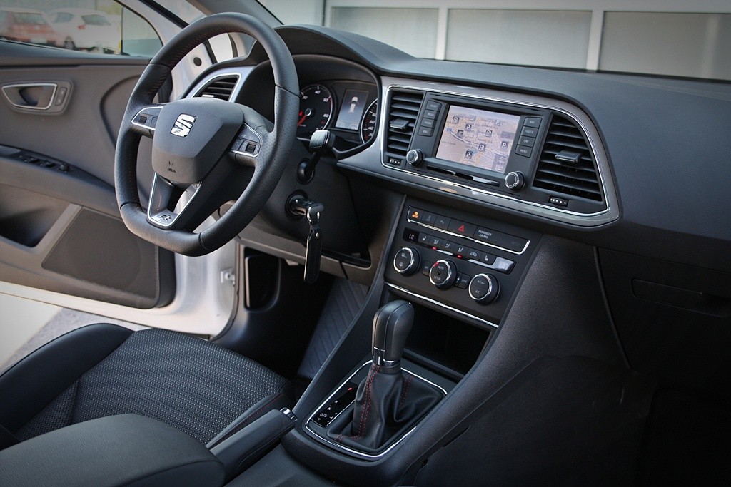 Der Innenraum ist erwartungsgemäß sportlich, und es gibt praktisch keine Unterschiede zum Fünftürer. Die Mittelkonsole ist dem Fahrer leicht zugewandt, sein Arbeitsplatz ist sportlich gestaltet und gestaltet. Konstruktion, Materialien und Ergonomie gehören zu den besten im Segment. Leon bringt auch einiges auf dem Gebiet fortschrittlicher Technik mit, wo man für einen moderaten Preis der Marke die meisten der heute bekannten Assistenzsysteme anbietet, alles von: Radar-Tempomat, Front-Assist-Verkehrsleitsystem bis hin zur Funktion des automatischen Notrufs Bremsen, Spurhalteassistent und Einparkhilfe.