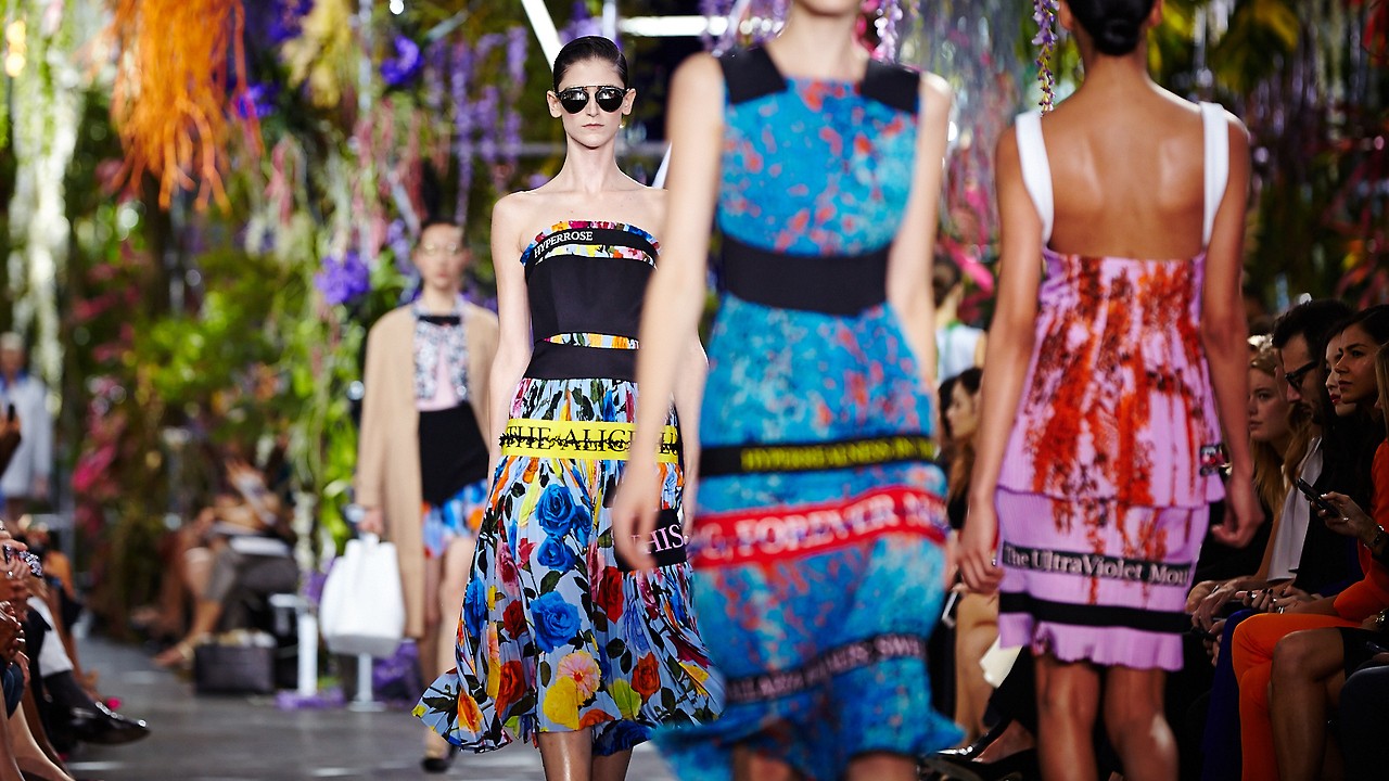 Diesmal betrat die Modebranche die Welt des geschriebenen Wortes, der Buchstaben und Botschaften, die gelesen und auf neuen Kreationen berühmter Modedesigner getragen werden können. Alexander Wang, Christian Dior, Celine, Erdem, Louis Vuitton, Masha Ma und Kenzo sind nur einige Designernamen, die ihre Kreationen mit einer Geschichte, Slogans oder Logos signierten.