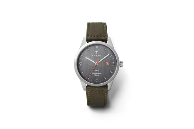 Neues Modell Triwa x Humanium-Metall wird es in zwei Durchmesserversionen geben 39 bzw 34 Millimeter. Kunden können auch zwischen wählen dunkelgrau und Stahlzifferblatt und Ledergürtel der schwedischen Firma Tärnsjö und mit militärgrünem Gürtel aus Cord. Es soll die Uhr schützen Saphirglas, die kratzfest ist. Die Uhr ist auch wasserdicht. Sie können es bis verwenden 100 Meter unter der Oberfläche.