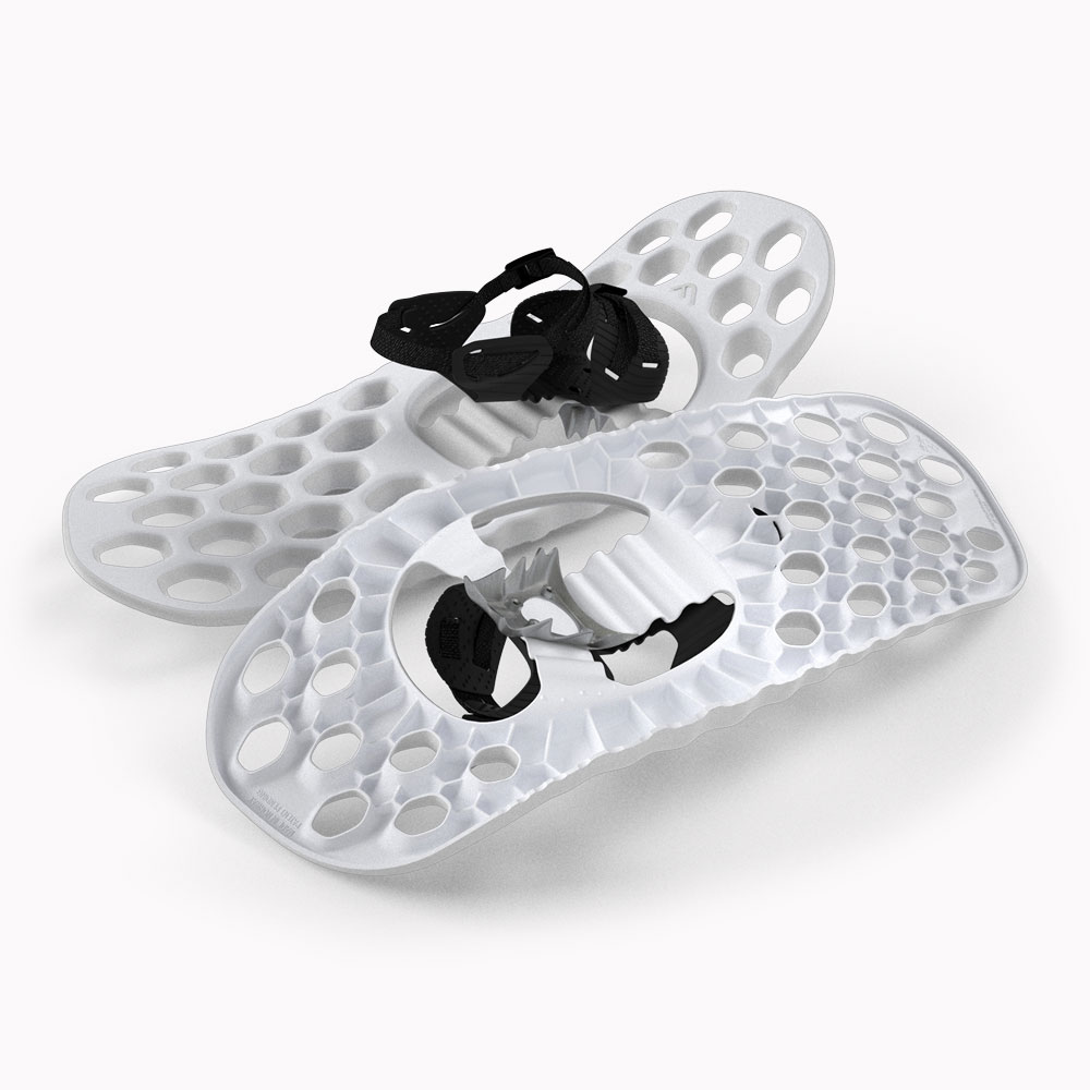 Auch wenn diese spezielle Sportart „Schneeschuhwandern“ hierzulande nicht die größte Begeisterung genießt und wir sie sicherlich nicht als eine der attraktivsten einstufen können, gehören diese Schneeschuhe definitiv in diese Kategorie Technologien, da sie aus einem speziellen Material bestehen Dupont Hytrel, ein thermoplastisches Elastomer, das sich durch seine Flexibilität und Festigkeit auszeichnet.