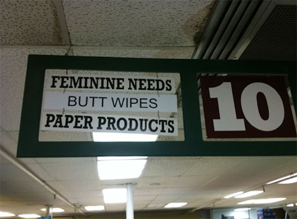 In Geschäften gibt es keine Zufälle. Product Placement (Ausstellen und Positionieren von Waren) ist sorgfältig durchdacht, daher sind die Fehler, die sich diese Geschäfte erlauben, äußerst unzulässig, aber andererseits äußerst glücklich. Jemandes Chef hat sie hart strapaziert, nur damit wir heute darüber lachen können, dass es wehtut.