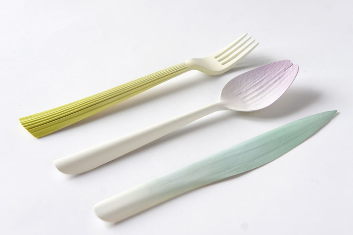 Für Diplomarbeit, Projekt Transplantat sie entwarf Besteck , dem sie das Gefühl gab, aus Obst und Gemüse gemacht zu sein. Die Struktur und Formen des Gemüses dienen als integraler Bestandteil des Zubehörs. Ein beeindruckendes Set aus Gabeln, Messern, Löffeln und Servierbechern besteht aus biologisch abbaubarem Biokunststoff Pla, der das Konzept natürlicher, abbaubarer Materialien (Obst und Gemüse) vervollständigt. Die Produkte befinden sich noch in der Entwicklungsphase, sollen aber in naher Zukunft in Produktion und auf den Markt gebracht werden.