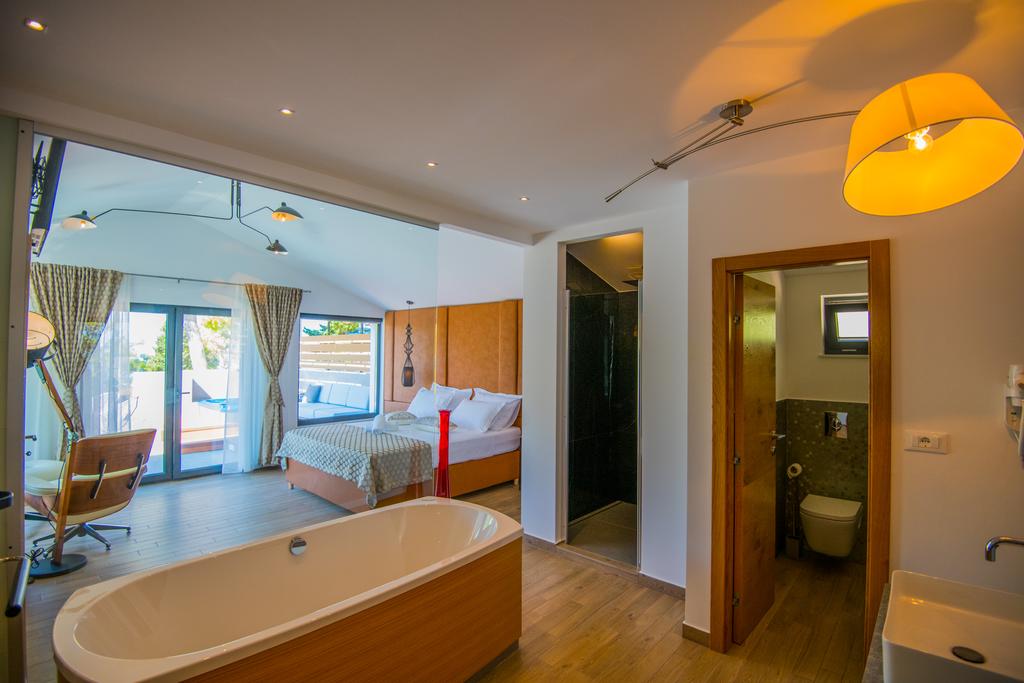 Villa Delinda Es ist von einem Pinienhain umgeben und liegt angemessen abseits vom Trubel der Stadt, so dass sich die Gäste intim fühlen, aber gleichzeitig nicht weit von der Stadt entfernt sind, die Sie in nur wenigen Autominuten erreichen können . Dank der Lage können die Gäste sie genießen hedonistisch mit Blick auf Makarska und die beiden Inseln Hvar und Brac auf der Handfläche.