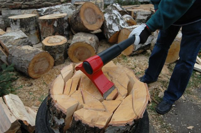 Genau deshalb ist es so Finnischer Erfinder entwickelt Vipukirves oder Hebelaxt, mit deren Hilfe das Hacken aufgrund der ungewöhnlich geformten Klinge als Katzenhusten bezeichnet wird. Axt von Vipukirves ist so ausgelegt, dass Kontaktkraft Klinge dreht sich von der Mitte zum Rand des Baumstamms. Der Vorgang selbst ist genau derselbe wie beim klassischen Hacken, nur dass die Kraft viel geringer ist, weil unterschiedlicher Schwerpunkt das Blatt fährt anders und macht im Stamm ca acht Zentimeter großes Loch, das Protokoll buchstäblich aufteilen in mehrere Teile.