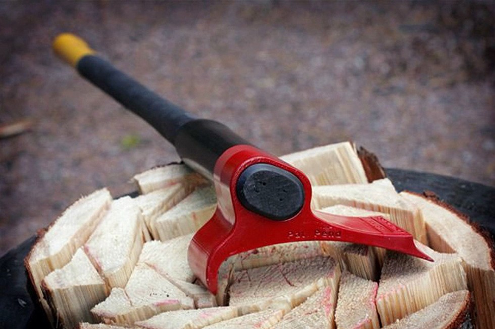 Genau deshalb ist es so Finnischer Erfinder entwickelt Vipukirves oder Hebelaxt, mit deren Hilfe das Hacken aufgrund der ungewöhnlich geformten Klinge als Katzenhusten bezeichnet wird. Axt von Vipukirves ist so ausgelegt, dass Kontaktkraft Klinge dreht sich von der Mitte zum Rand des Baumstamms. Der Vorgang selbst ist genau derselbe wie beim klassischen Hacken, nur dass die Kraft viel geringer ist, weil unterschiedlicher Schwerpunkt das Blatt fährt anders und macht im Stamm ca acht Zentimeter großes Loch, das Protokoll buchstäblich aufteilen in mehrere Teile.