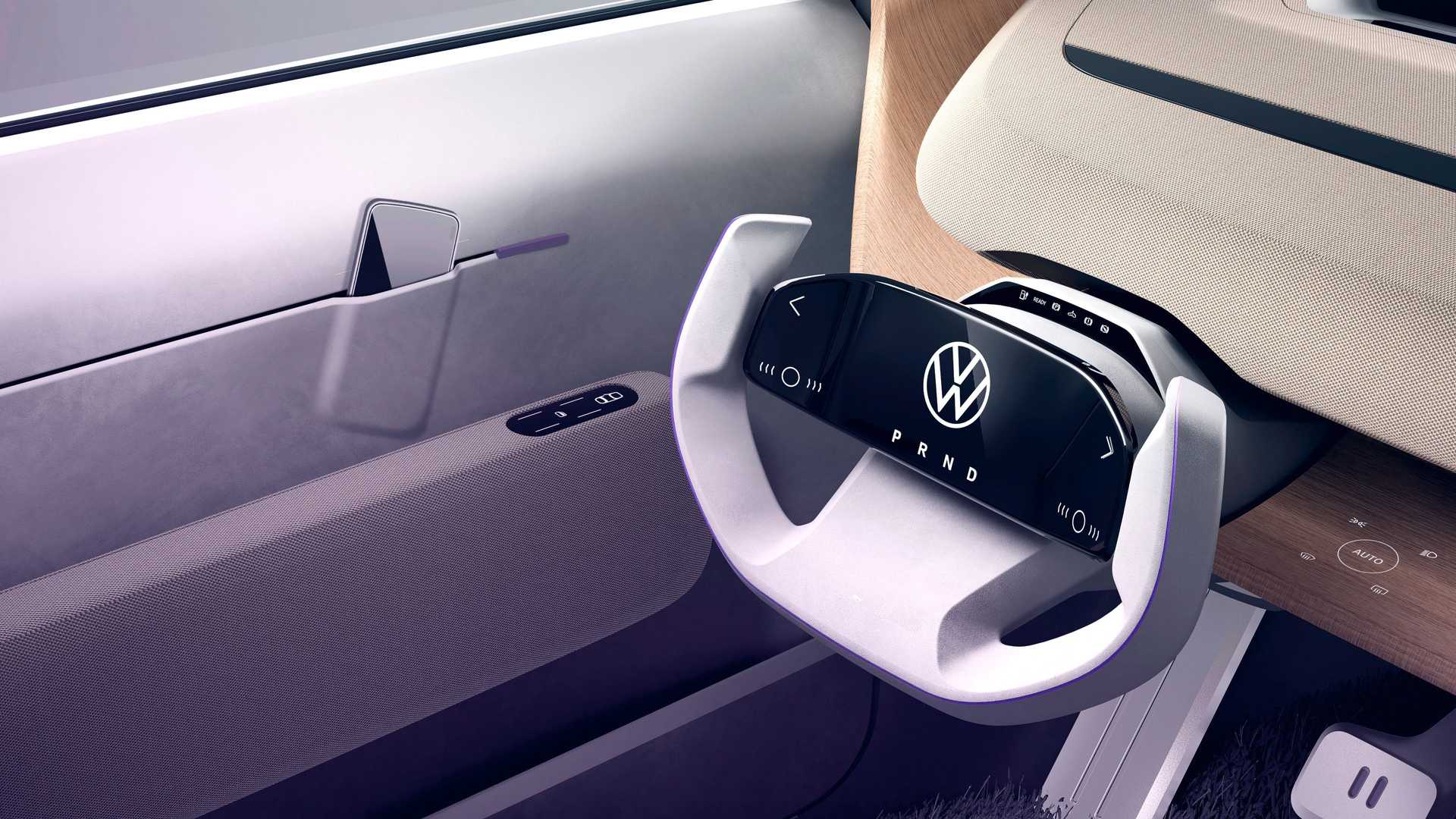 Das Volkswagen-Konzept wird ein bewegliches Dach haben, und Kameras und Bildschirme werden alle Spiegel am oder im Auto ersetzen. Alle Steuerfunktionen werden vom Fahrer über den Touchscreen am futuristischen Lenkrad verwaltet. Die Trennlinie zwischen der Karosserie, den Glasflächen und dem Dach des Concept Cars wird stark betont. Die für die Herstellung verwendeten Materialien sind natürlich Herkunfts, und die Kunststoffteile bestehen aus recycelt Flasche.
