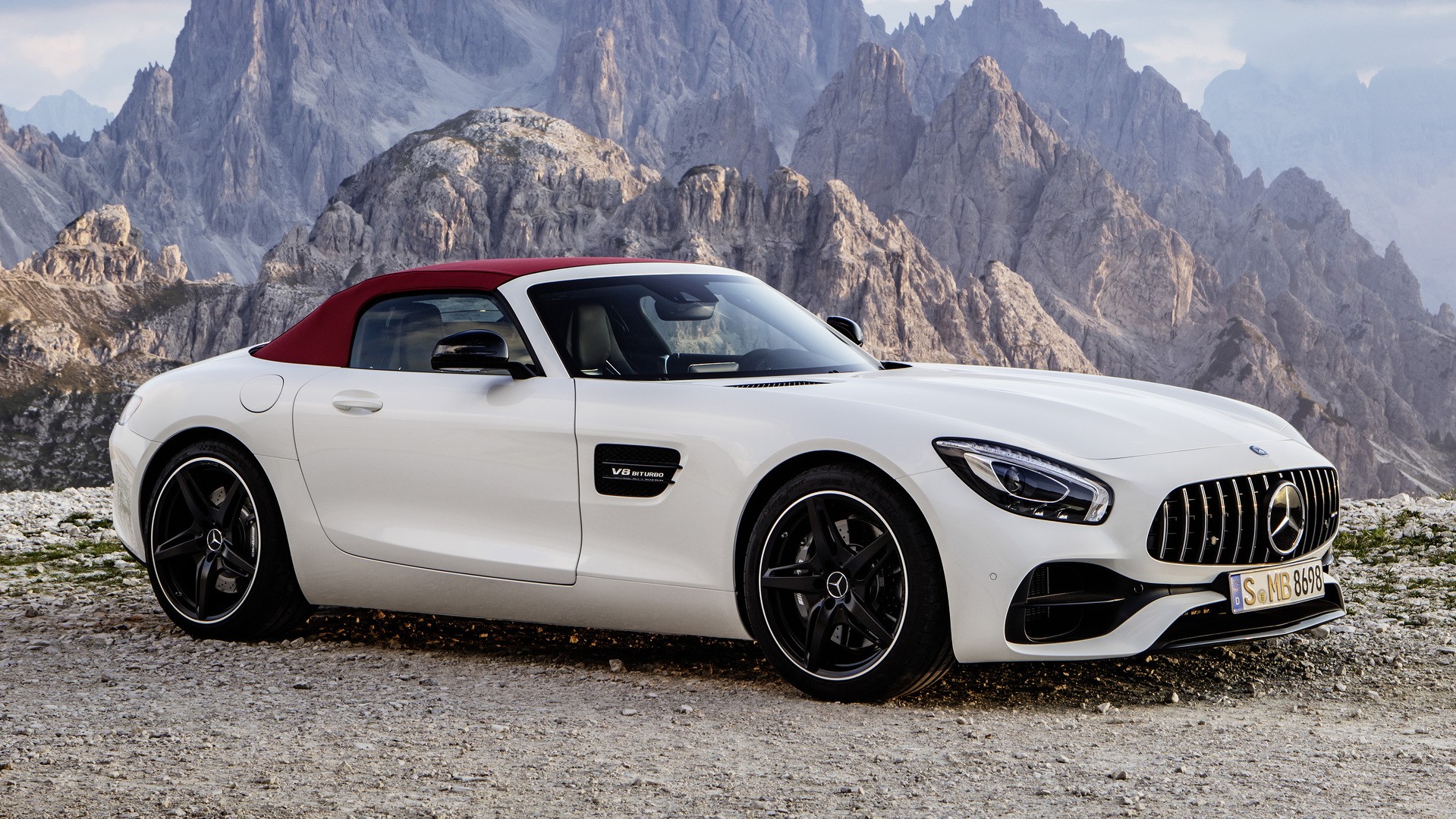 Mercedes-Benz je na pariškem avtosalonu predstavil brezstrešno navezo modela Mercedes-AMG GT, ‘enojajčna dvojčka’ AMG GT Roadster in AMG GT C Roadster. Oba uporabljata 4-litrski biturbo motor V8, le da prvi iz njega iztisne 476 KM (350 kW, najvišji navor 630 Nm), močnejša izpeljanka pa 557 KM oz. 410 kW, kar je le 20 kW manj kot prvak razreda, GT AMG GT R. GT C se od 0 do 100 km/h izstreli v 3,7 sekunde, za trohico manj zmogljiva različica pa za to potrebuje 4 sekunde. In medtem ko slednji zmore hitrosti do 302 km/h, se GT C-ju merilnik ustavi pri 316 km/h. AMG GT C Roadster si je od modela AMG GT R sposodil kar precej športnega znanja. Med drugim krmiljenje zadnjega para koles (ti spreminjata kot in s tem pomagata pri vožnji skozi zavoje) in elektronsko zaporo diferenciala na zadnji premi, ki ga dopolnjuje športno vzmetenje AMG Ride Control.