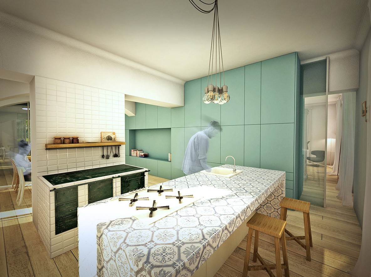 Architekturbüro Die Welt dazwischen wurde 2010 in Ljubljana gegründet und brachte junge Architekten zusammen, deren Hauptziel es ist, schlecht gestaltete Räume umzuwandeln und neue Zwischenräume zu schaffen. Sie konzentrieren sich hauptsächlich auf Bildungseinrichtungen und „dazwischen“ stellen für sie ein großes Gestaltungspotential dar, mit dem sie die Qualitäten des Raums selbst hervorheben wollen. Ihre Projekte sind voller kräftiger Farben und verspielte Formen und interessante Raumlösungen. Den Kern des Büros Svet bilden drei Architekten der jüngeren Generation Jure Hrovat, Ana Kosi und Ana Kreč, und bei Bedarf wird das Team erweitert und ergänzt. Sie können auf viele abgeschlossene Projekte, Publikationen und Auszeichnungen zurückblicken. Sie bereiten sich gerade auf eine Präsentation in der Gruppe vor Monate gestalten, wo sie zur Teilnahme eingeladen sind zum Muse-Projekt. Dazu müssen die Architekten einen Ausstellungsraum entwerfen, in dem sich drei Anbieter präsentieren – ein Künstler, ein Möbeldesigner und ein Antiquitätenhändler.