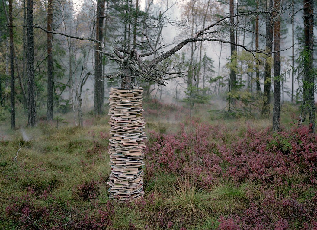 Rune Guneriussen Gegenstände, die er darin platziert surreale Kompositionen, haucht neues Leben ein. Sie scheinen zu sein verzauberte Gegenstände, die die Gesellschaft einfach vergessen hat. Beleuchtung verstecken sich im Wald, Telefone versammeln sich wie Schwärme vergessener Seevögel, Bücher Sie steigen wie eine ungewöhnliche Baumart in den Himmel ...