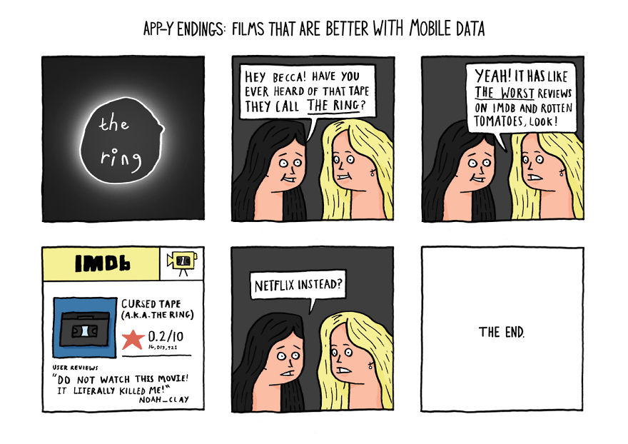 Eine Menge Kultfilme wurde vor dem Aufkommen intelligenter Geräte aufgezeichnet. Sie würden es sonst dringend tun beeinflusste das Szenario. Wenn die Charaktere beispielsweise die Polizei rufen, auf Google Maps nach Wegbeschreibungen suchen oder einfach die Angelegenheit googeln könnten, Die Hälfte der Dinge, die wir in einigen berühmten Filmen gesehen haben, wäre überhaupt nicht passiert. Was wäre, wenn alle diese Charaktere Zugang zu einem Smartphone hätten? Das fragte sich auch der Internetanbieter Plusnet, der seine Schlussfolgerungen in einer Reihe lustiger Illustrationen präsentierte, die vorhersagen, wie manche Filme enden würden, wenn die Hauptdarsteller ein Mobiltelefon hätten.