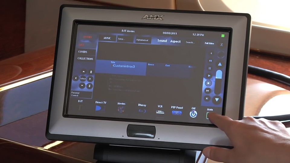 Es rühmt sich Kino, Esszimmer, VIP-Raum, Badezimmer, Büros, Gästezimmer, Schlafzimmer (jedes mit eigenem Heimkino) und Hauptschlafzimmer, dekoriert mit goldener Seide. Bei der Einrichtung hat Trump wirklich keine Kosten gescheut. Goldene Wasserhähne und Waschbecken im Marmorbad und Sicherheitsgurtschlösser mit abgedeckt 24 Karat Gold, sind lediglich das i-Tüpfelchen dieses Luftpalastes. Dass alles in ihm steckt die neueste Elektronik, unnötig zu erwähnen.