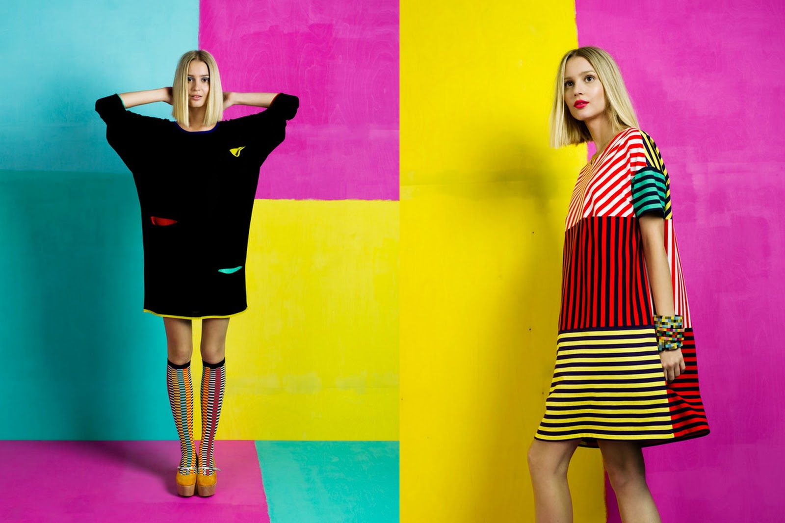 Die stets verspielte skandinavische Marke bringt eine Brise warmer Modeinspirationen für den kommenden Frühling. Eine Kollektion aus leichten Cocktailkleidern, Regenmänteln, Tuniken und Strumpfhosen in unzähligen kräftigen Polka Dots, Karos, Wellen und Streifen kombiniert mit klassischem Schwarz und Weiß. Wahrlich kitzelnde Frühlingsliebe auf den ersten Blick!