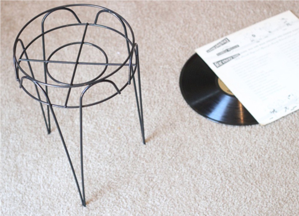 Potrebujemo vinilno ploščo, ki nam je ni škoda uporabiti v ta namen. Če je doma nimamo, ujemimo kakšno garažno razprodajo ali za njo pobrskajmo na sejmu. Ovitka ne potrebujemo, če pa je zanimiv, ga seveda lahko uporabimo kot dekoracijo prostora. V kleti, na podstrehi ali v lopi pri babici poiščimo stojalo za rože, ki se bo ujemalo s premerom plošče, v garaži pištolo za vroče lepljenje in plastične palčke, nato pa se delo lahko prične.
