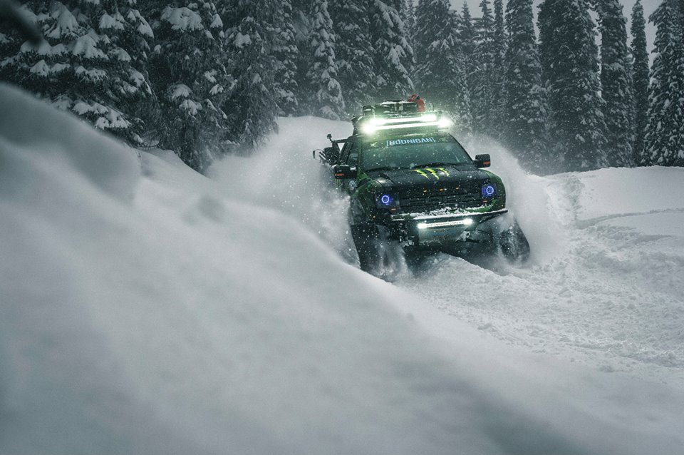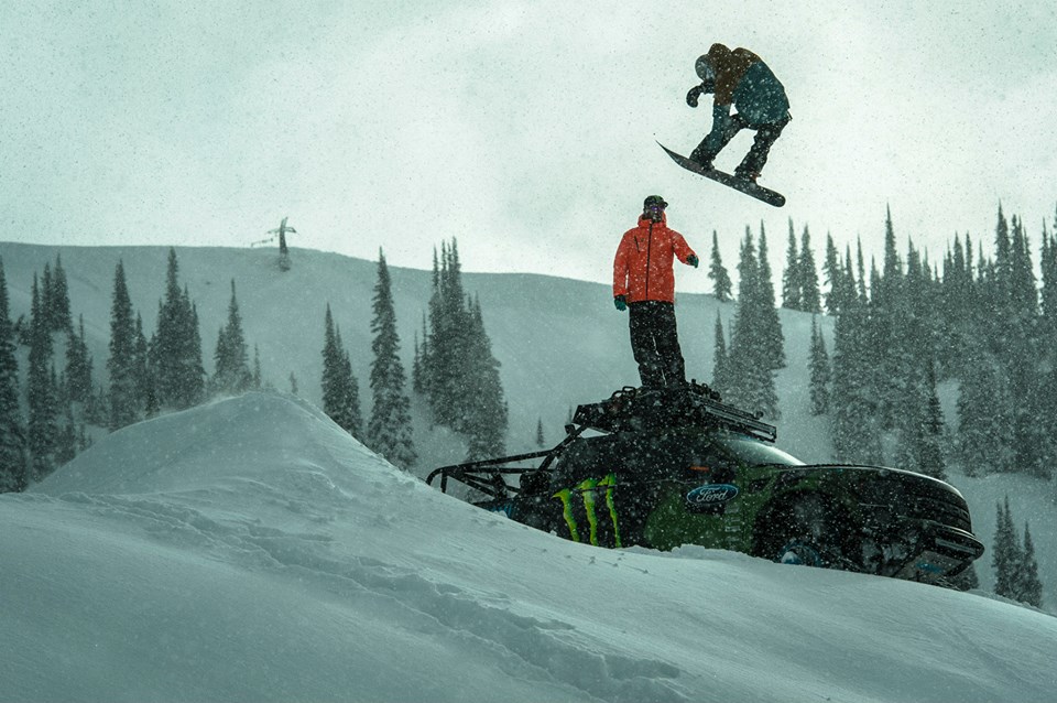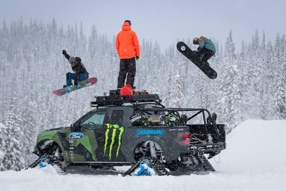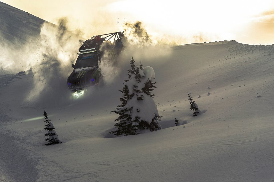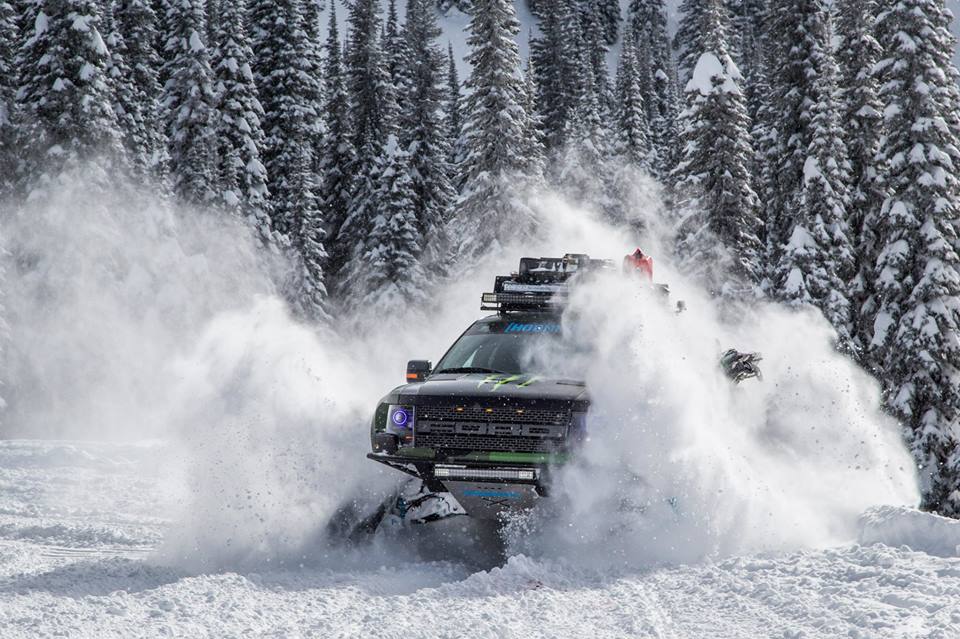 V kolikor Ken Blocka povabiš otvoritev bordarske sezone, je možnost velika, da bo sabo pripeljal mnogo opreme, ki z bordanjem nima veliko skupnega. Tokrat je svoje gostitelje presenetil s pošastjo za snežne terene - fordom - F-150 Raptor, ki je opremljen s konverzijo koles v sistem TRAX.