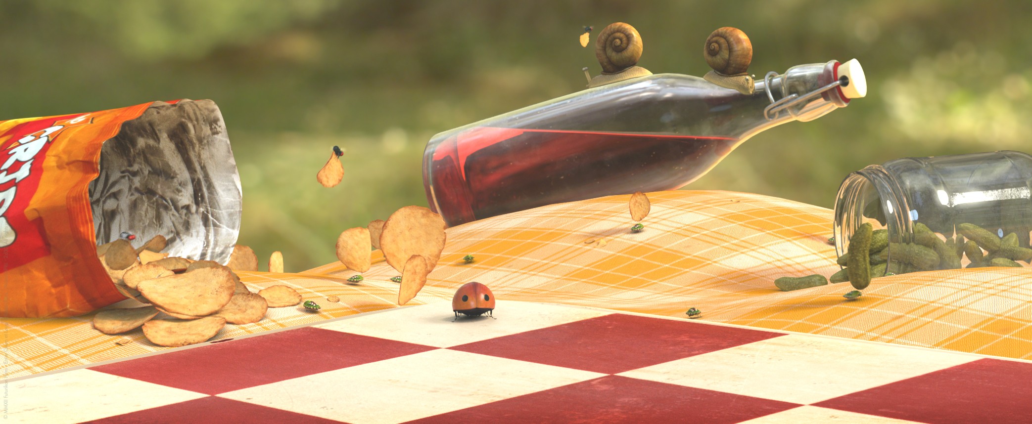 Na majhni, mirni jasi sredi gozda je mlad par ravno končal s piknikom. Fant počiva pod borovci, njegovo nosečo dekle pa se sladka z jagodami. Nepričakovano nastopijo popadki in nemudoma odhitita v bolnišnico, za seboj pa pustita ostanke piknika, med katerimi je tudi posoda s sladkorčki. Istočasno se komaj rojena, a neustrašna pikapolonica, ki se je izgubila v gozdu in so jo ujele muhe, zateče na varno v posodo s sladkorčki. Naslednji dan se znajde ujeta sredi bitke za kocke sladkorja med dvema kolonijama mravelj – črnimi in rdečimi. Spoprijatelji se z eno izmed črnih mravelj, Mandibulo, in ji pomaga braniti mravljišče pred napadom strašne vojske rdečih mravelj, ki jo vodi okrutni Butor.