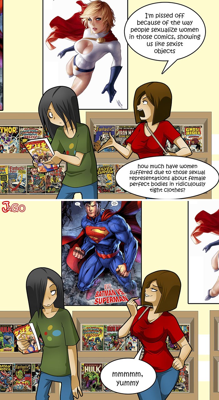 Najbolj očitni dvojni standardi izhajajo iz enakosti spolov – začenši z razlikami med moškimi in ženskami, ko gre način razmišljanja, življenja, oblačenja … V galeriji smo zbrali ilustracije umetnikov, ki s svojimi deli odstirajo problem neenakosti in nas opozarjajo, kako togi so naši umi, ko gre za prepoznavanje takšnih situacij v dejanskem življenju.